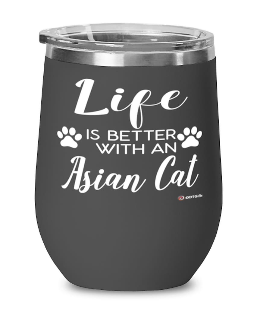 Funny Asian Cat Wine Glass Life Is Better With An Asian 12oz Stainless Steel Black