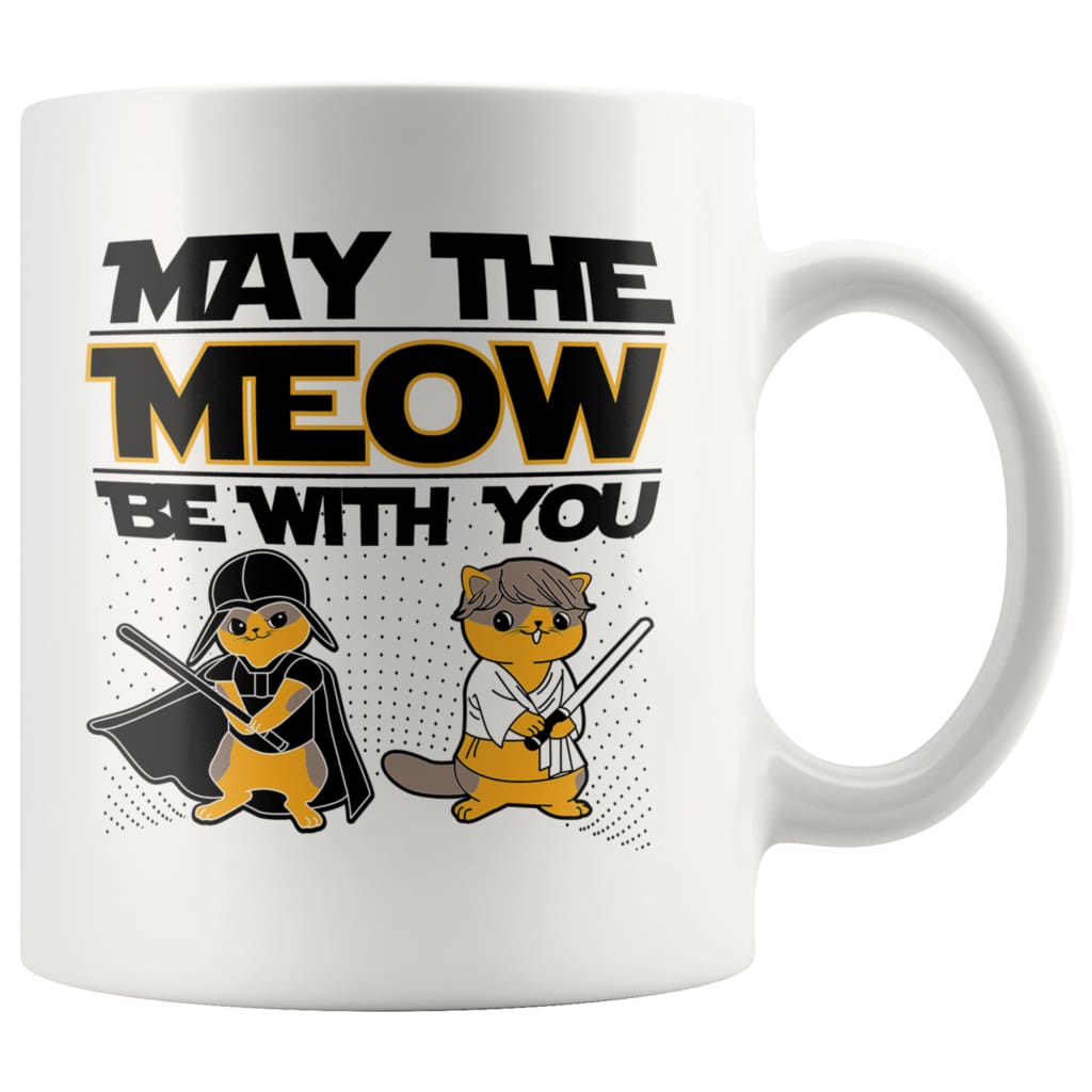Mug states May The Meow Be With YouThis high quality 11oz. ceramic white mug has a premium hard coat providing a crisp and vibrant color reproduction that will last for years. With a high gloss premium white...