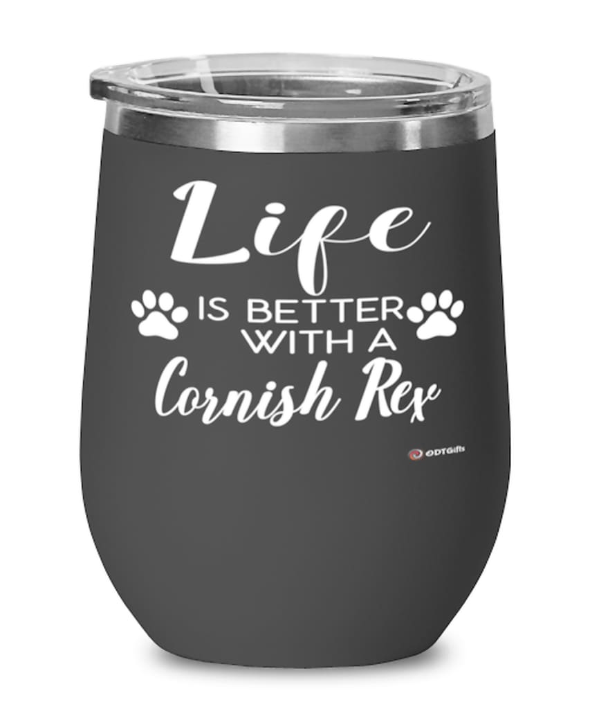 A beautiful stainless steel powder-coated stemless wine glass with a lid for Cornish Rex. It's the perfect gift for wine drinkers! This wine tumbler has a double-wall vacuum insulated for hot and cold liquids, and we...