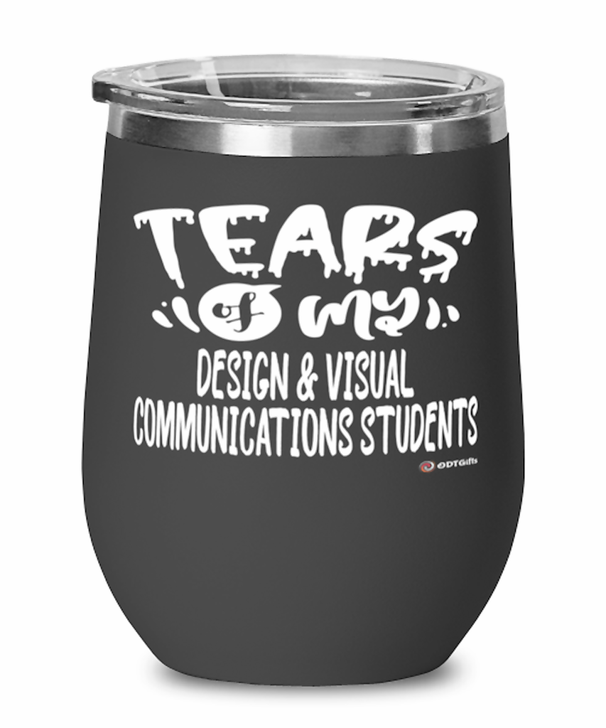 A beautiful stainless steel powder-coated stemless wine glass with a lid for Design and Visual Communications Professor Teacher. It's the perfect gift for wine drinkers! This wine tumbler has a double-wall vacuum insulated for hot and...