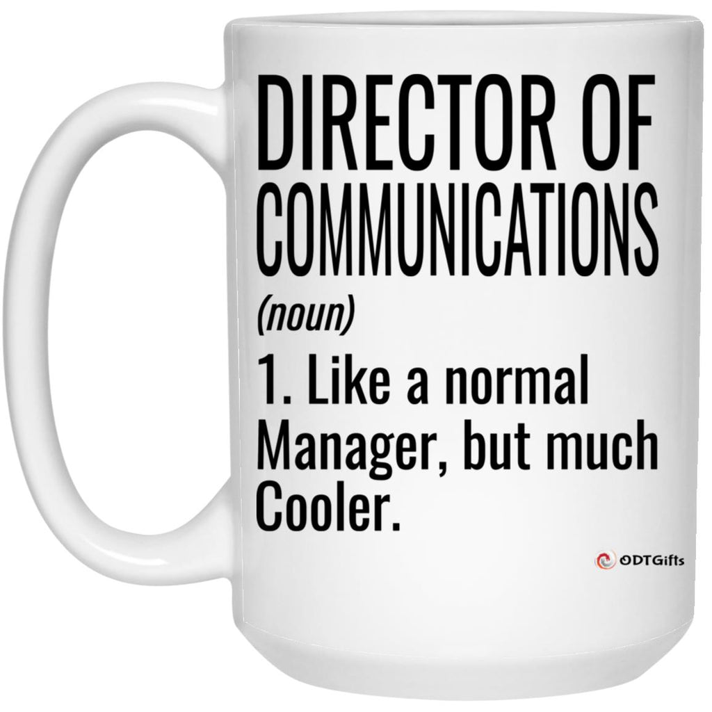 Funny Director Of Communications Mug Like A Normal Manager But Much Cooler Coffee Cup 15oz White High quality 15oz white gloss ceramic mug Top to bottom full wrap decoration Microwave & Dishwasher safe ORCA Coating™ for...