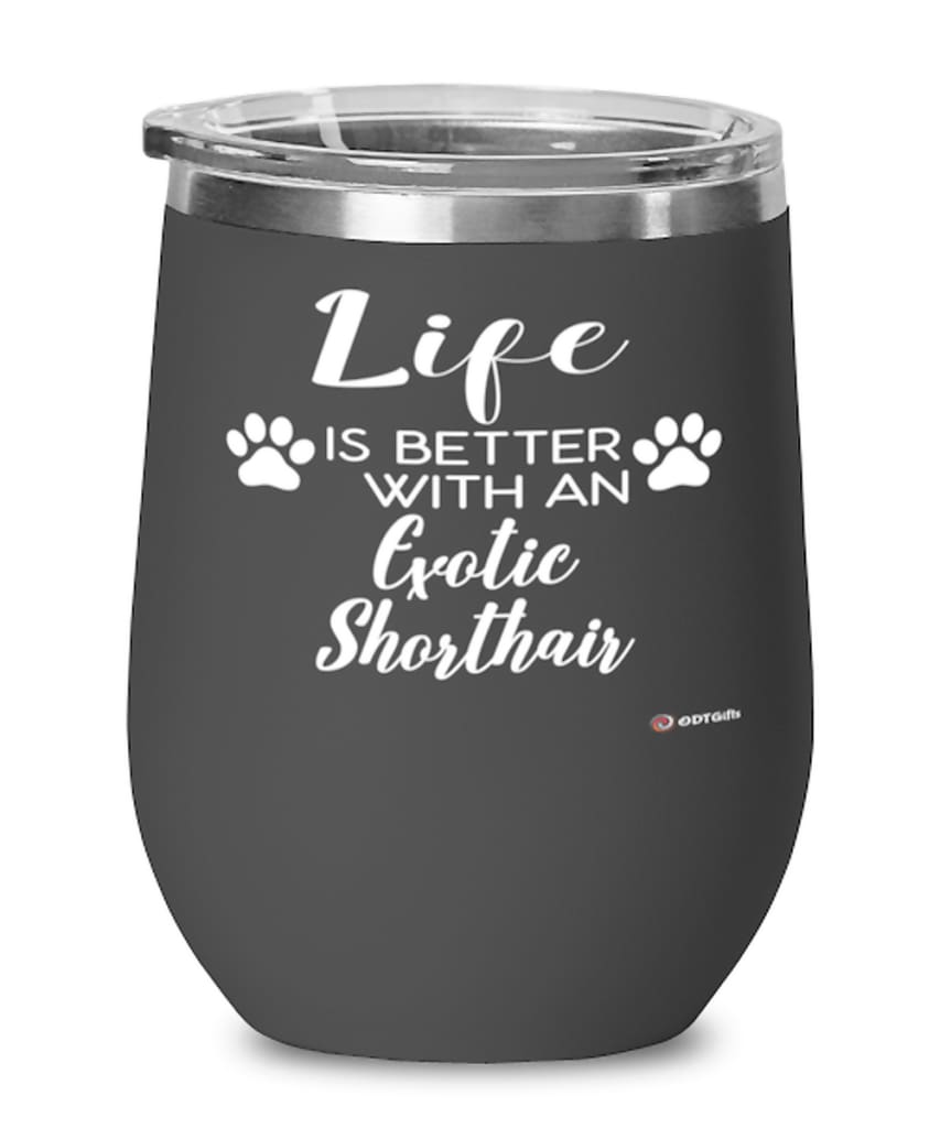 Funny Exotic Shorthair Cat Wine Glass Life Is Better With An Exotic Shorthair 12oz Stainless Steel Black