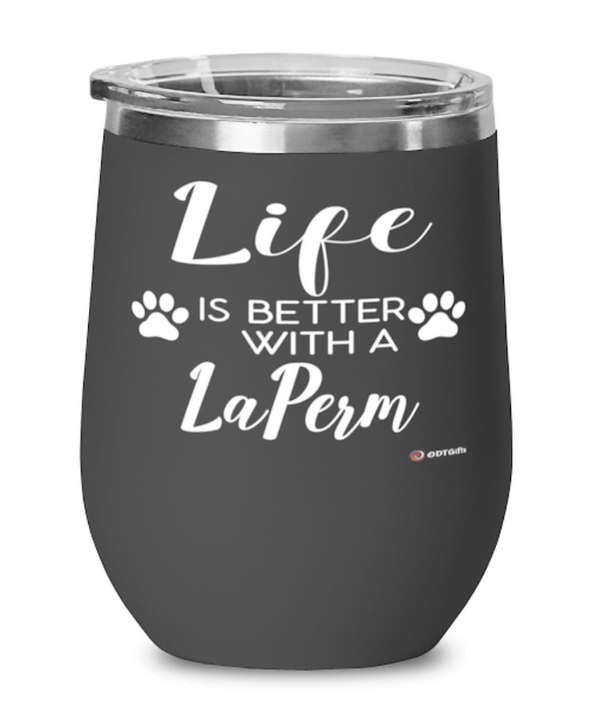 - LaPerm Vacuum Insulated Stemless Wine Glass w/Lid.