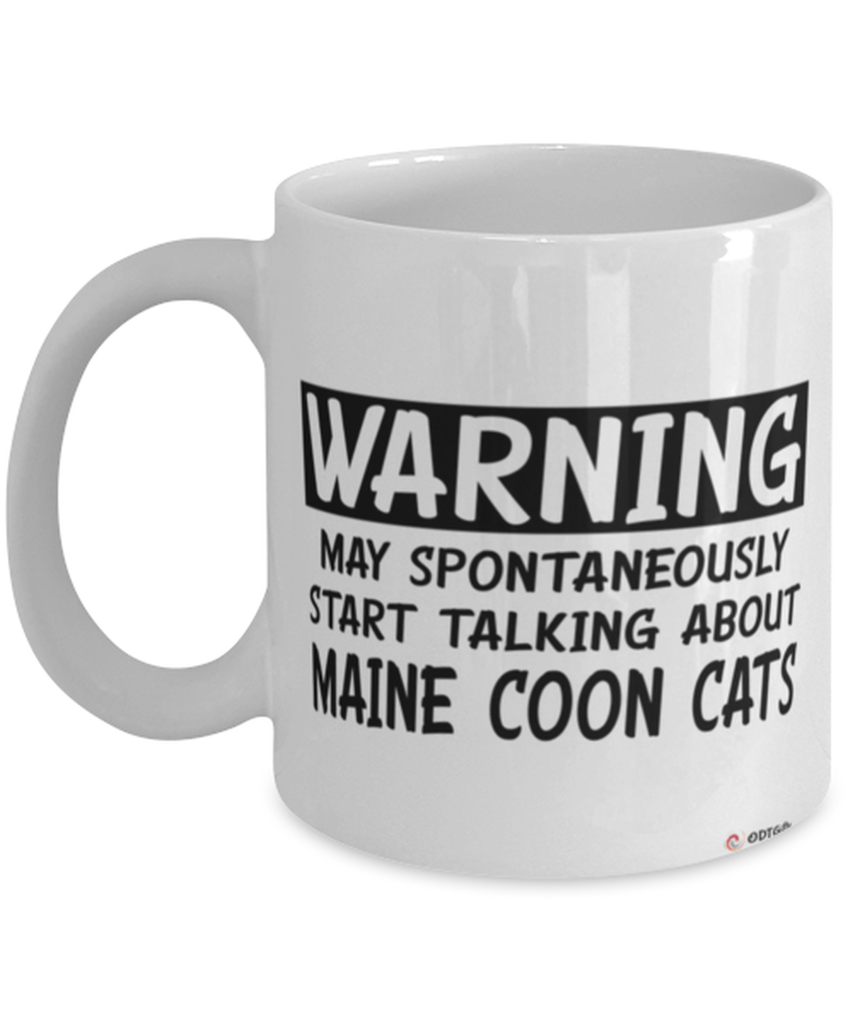 Funny Maine Coon Cat Mug Warning May Spontaneously Start Talking About Maine Coon Cats Coffee Cup White