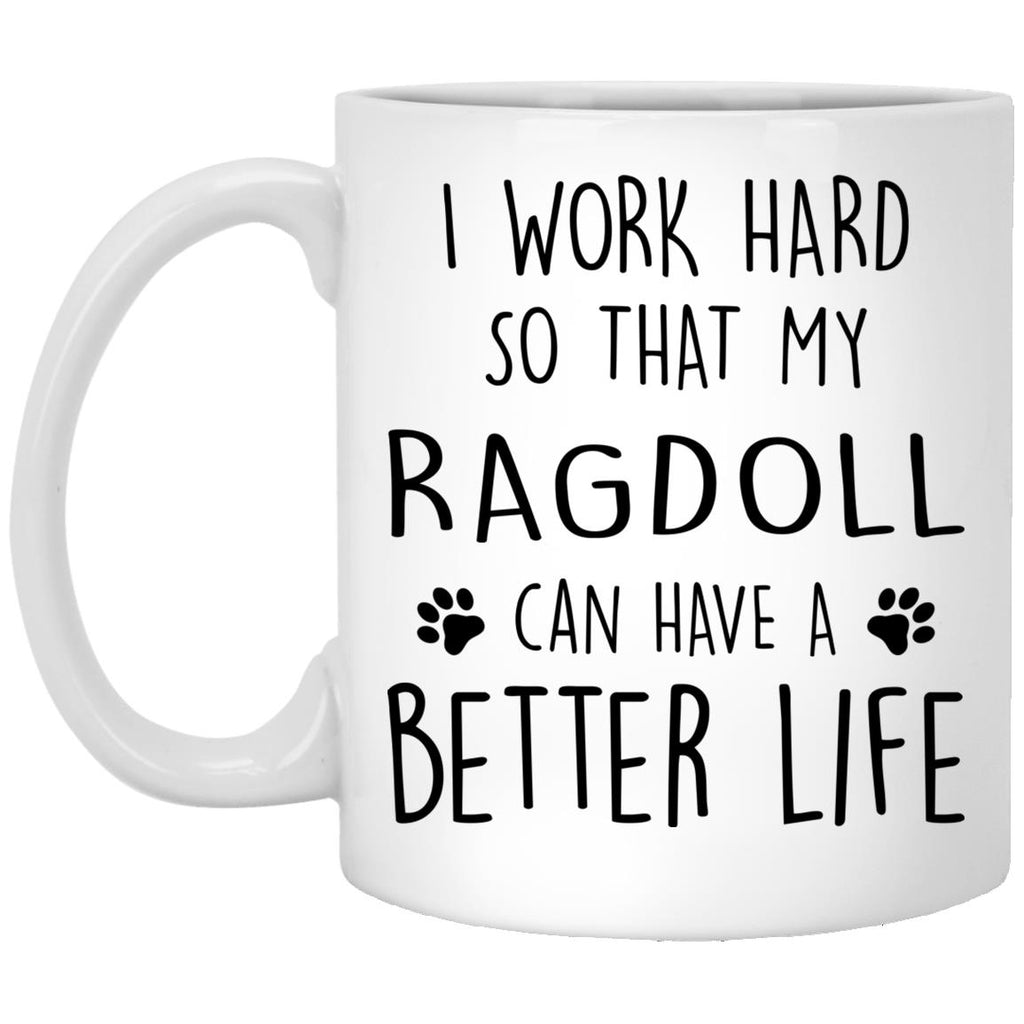 Funny Ragdoll Cat Mug I Work Hard So That My Ragdoll Can Have A Better Life Coffee Cup 11oz White High quality white gloss 11oz ceramic mug Dishwasher safe & Microwave safe Top-to-bottom full wrap dye...