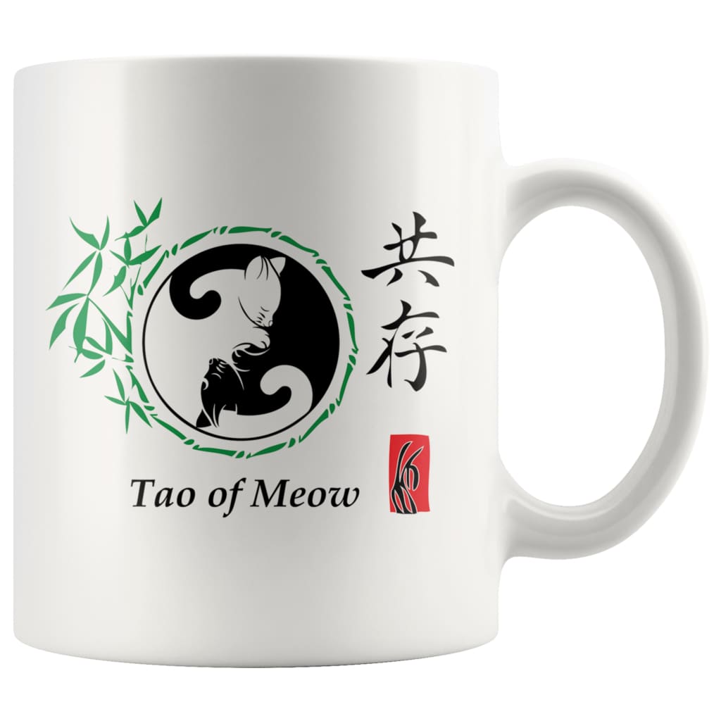 Cat Mug states Tao of Meow.This high quality 11oz. ceramic white mug has a premium hard coat providing a crisp and vibrant color reproduction that will last for years. With a high gloss premium white finish this...