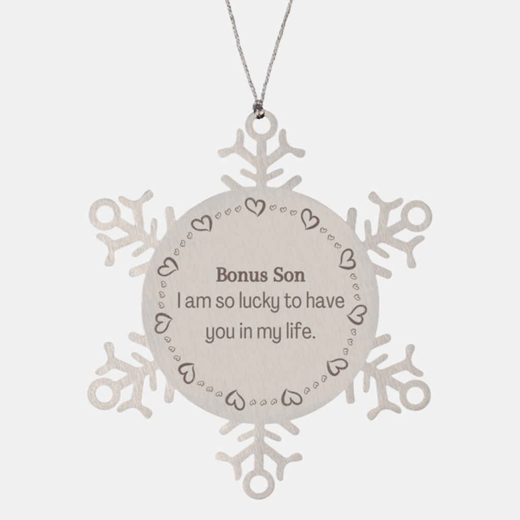 Embrace the spirit of the season with this Snowflake Bonus Son Ornament and infuse your holiday festivities with love and elegance. Elevate your Christmas decor with this timeless piece that embodies the true meaning of the holidays. Make your celebrations truly special with this exceptional ornament that captures the essence of Bonus Son.