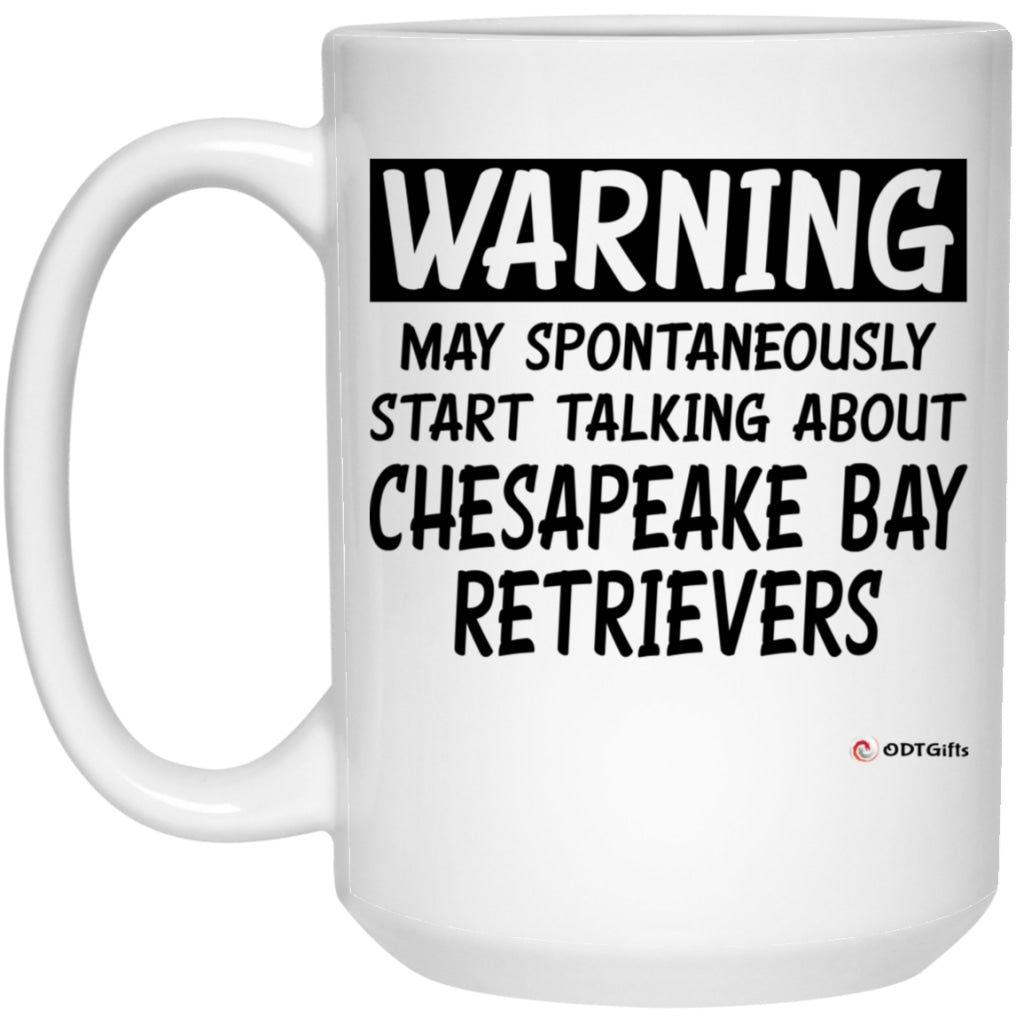 Chesapeake Bay Retriever Mug Warning May Spontaneously Start Talking About Chesapeake Bay Retrievers Coffee Cup 15oz White High quality 15oz white gloss ceramic mug Top to bottom full wrap decoration Microwave & Dishwasher safe ORCA Coating™...