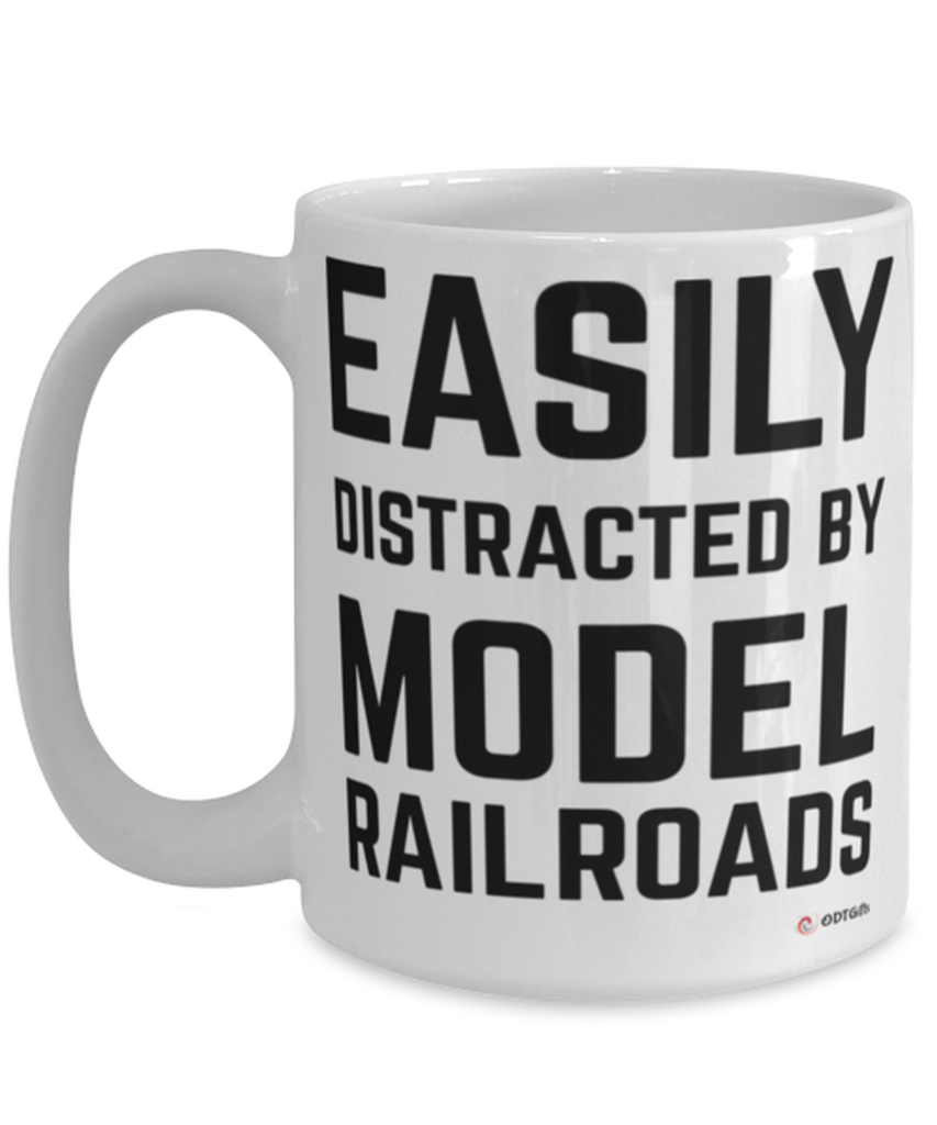 Funny Model Railroads Mug Easily Distracted By Model Railroads Coffee Cup 15oz White