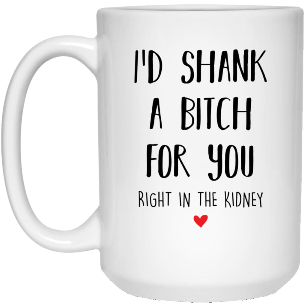 Funny Mug I'd Shank A B1tch For You Right In The Kidney 15oz White Coffee Cup High quality ceramic mug Dishwasher safe Microwave safe White gloss 15 oz Decorated with full wrap dye sublimation