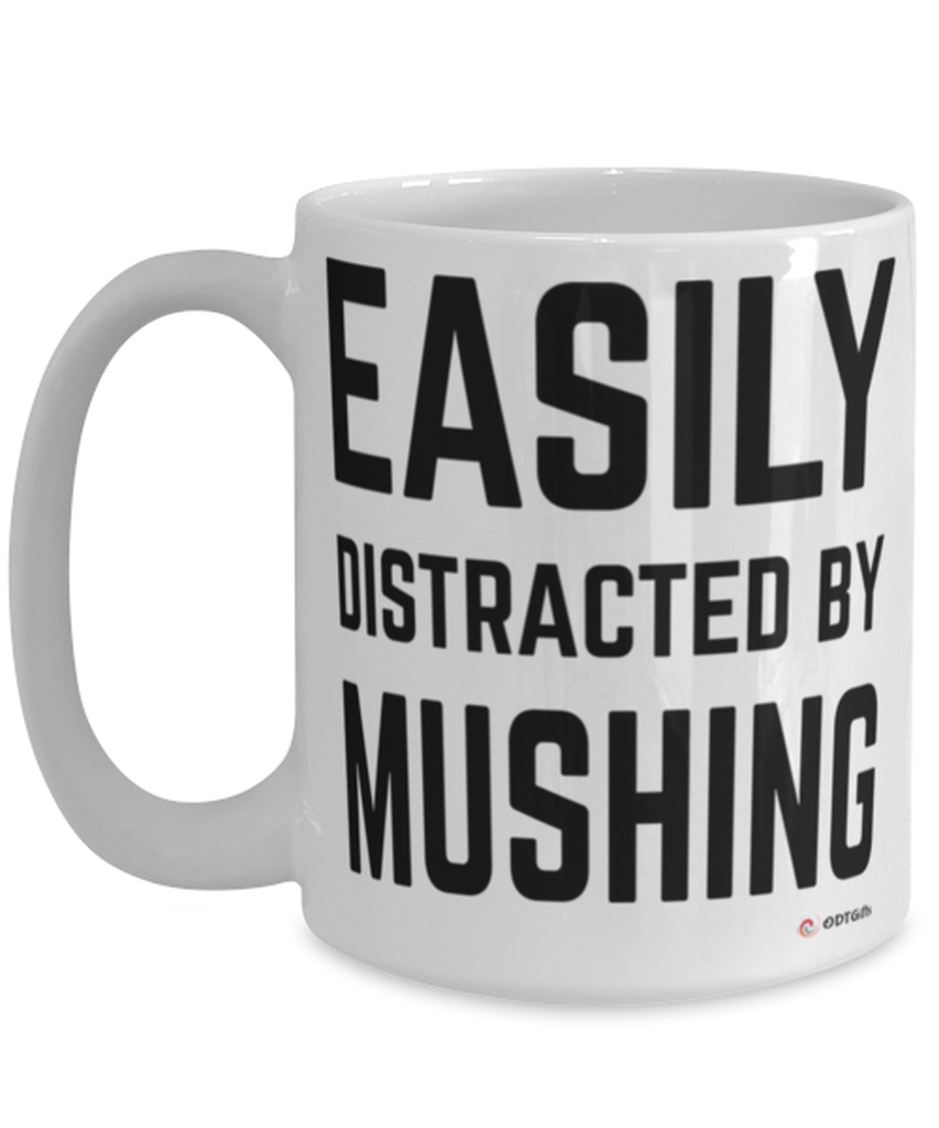 Funny Mushing Mug Easily Distracted By Mushing Coffee Cup 15oz White