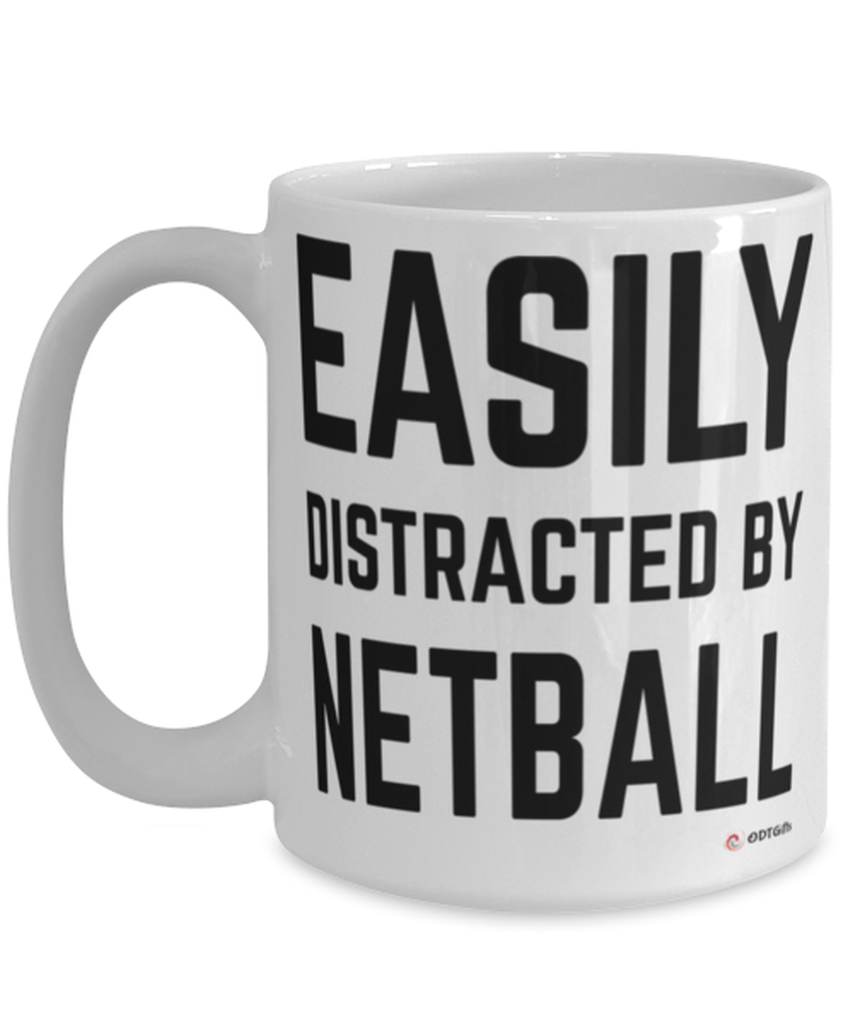 Funny Netball Mug Easily Distracted By Netball Coffee Cup 15oz White
