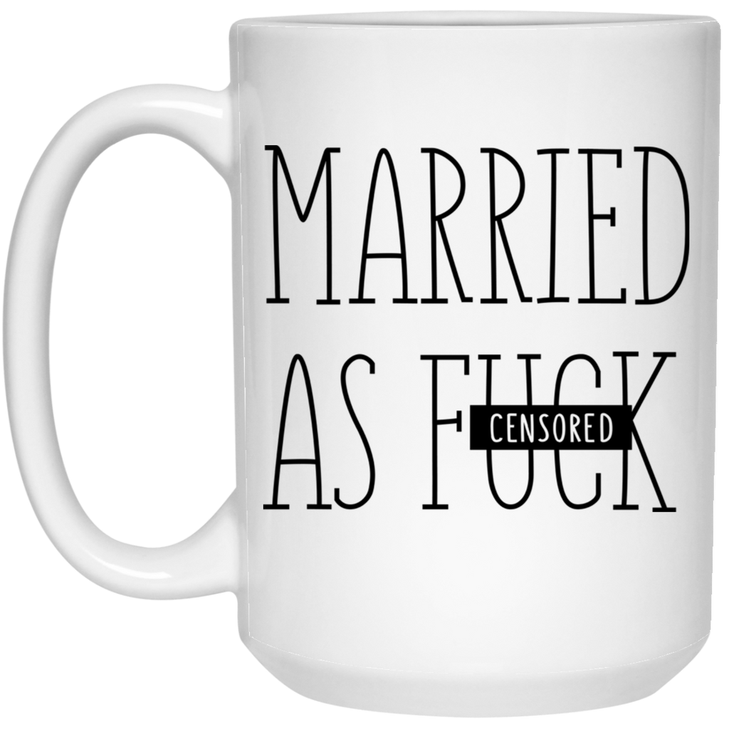 Funny Newlywed Mug Married As Fck Coffee Cup 15oz White High quality 15oz white gloss ceramic mug Top to bottom full wrap decoration Microwave & Dishwasher safe ORCA Coating™ for maximum print vibrancy Decoration Type: Sublimation...