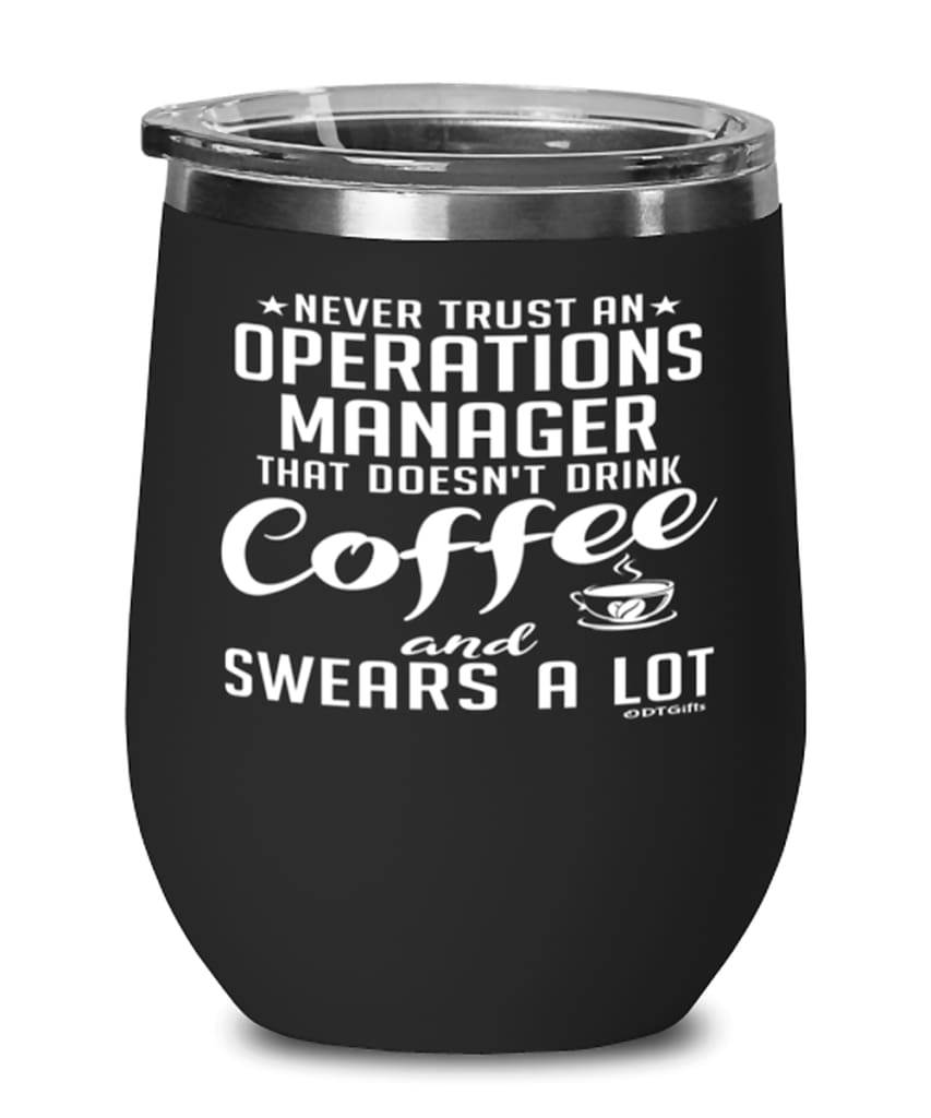 Funny Operations Manager Wine Glass Never Trust An Operations Manager That Doesn't Drink Coffee and Swears A Lot 12oz Stainless Steel Black
