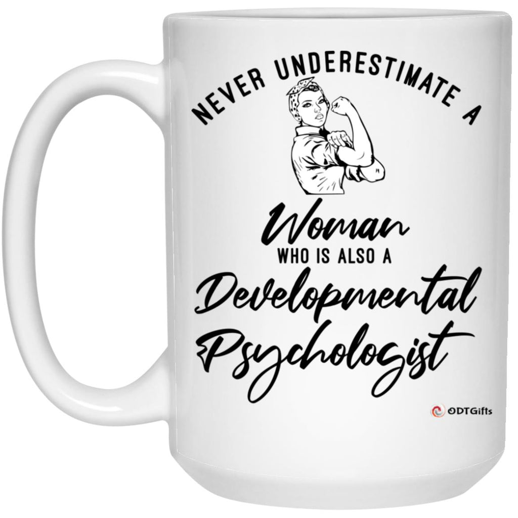 Developmental Psychologist Mug Never Underestimate A Woman Who Is Also A Developmental Psychologist Coffee Cup 15oz White High quality 15oz white gloss ceramic mug Decorated with full wrap dye sublimation Microwave & Dishwasher safe AAA ORCA...