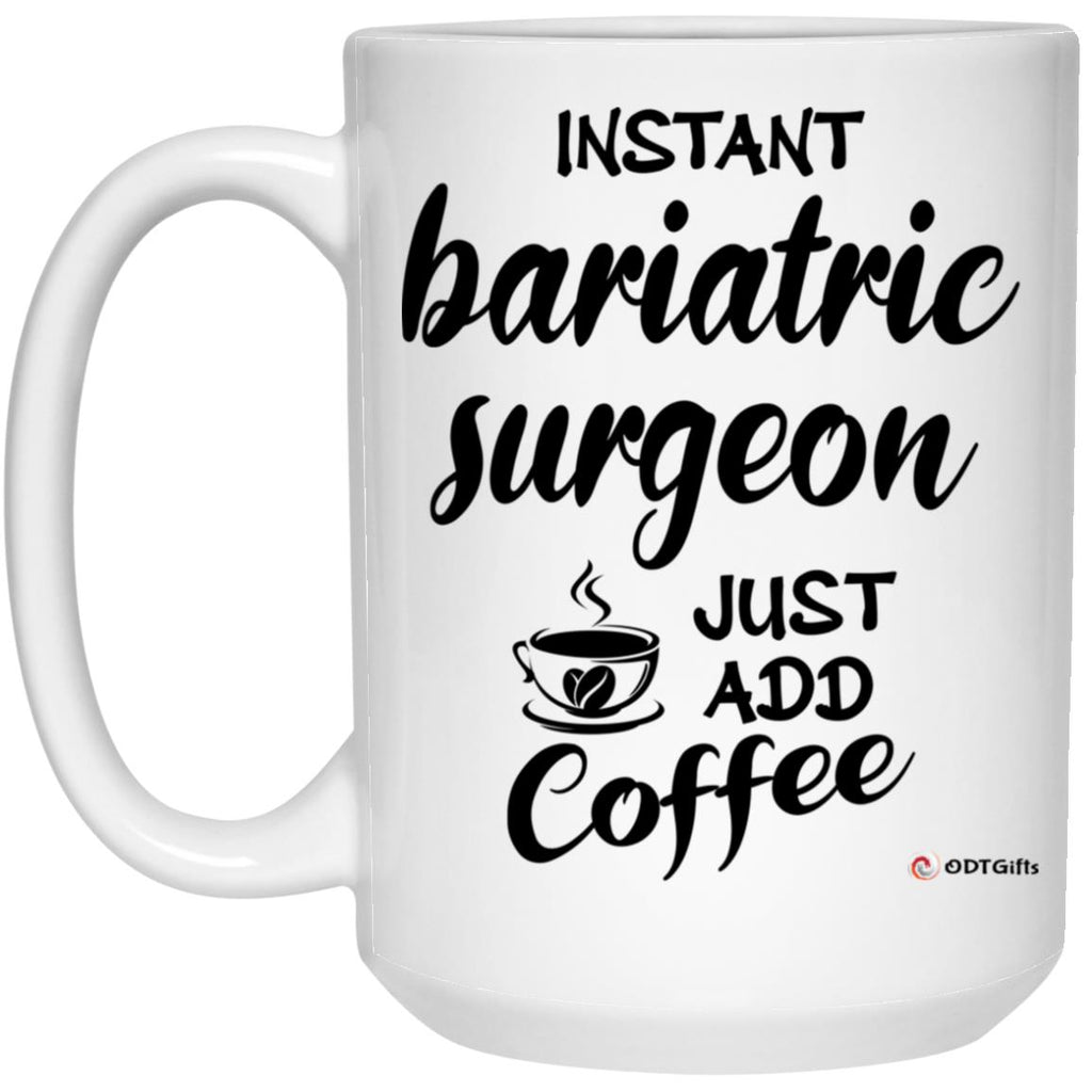 Funny Bariatric Surgeon Mug Instant Bariatric Surgeon Just Add Coffee Cup 15oz White High quality 15oz white gloss ceramic mug Decorated with full wrap dye sublimation Microwave & Dishwasher safe AAA ORCA Coating™ for maximum print...