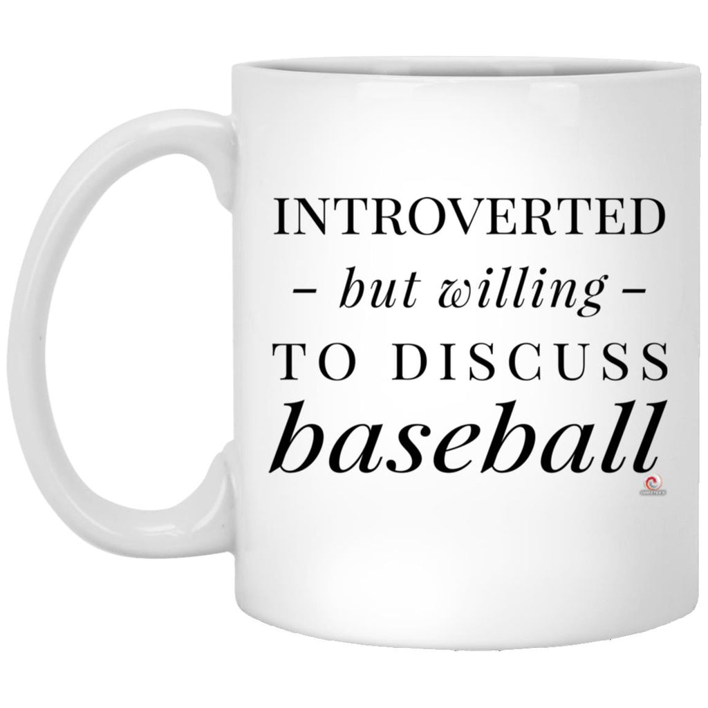 Funny Baseballer Mug Introverted But Willing To Discuss Baseball Coffee Cup 11oz White