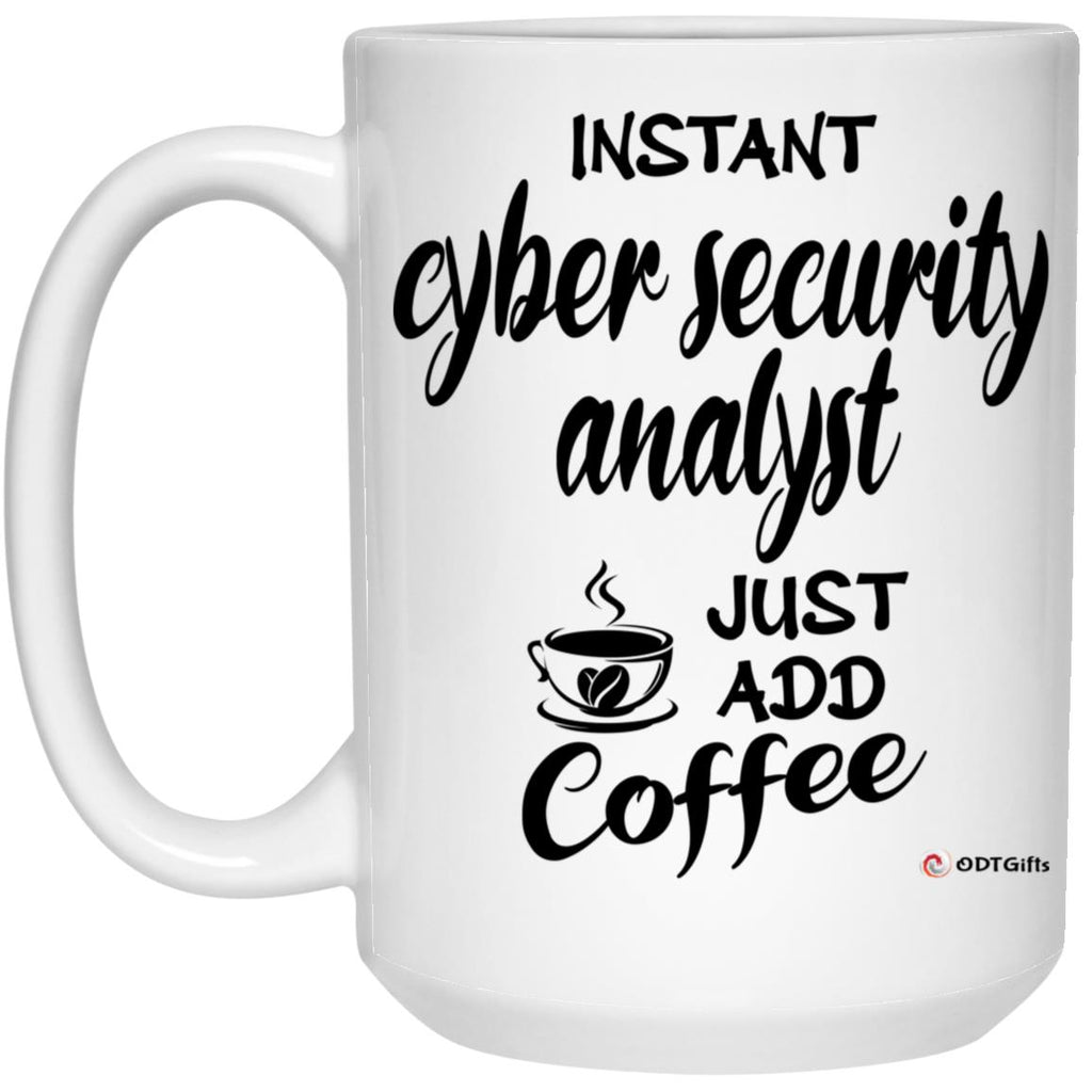 Funny Cyber Security Analyst Mug Instant Cyber Security Analyst Just Add Coffee Cup 15oz White  High quality 15oz white gloss ceramic mug Decorated with full wrap dye sublimation Microwave & Dishwasher safe AAA ORCA Coating™ for...