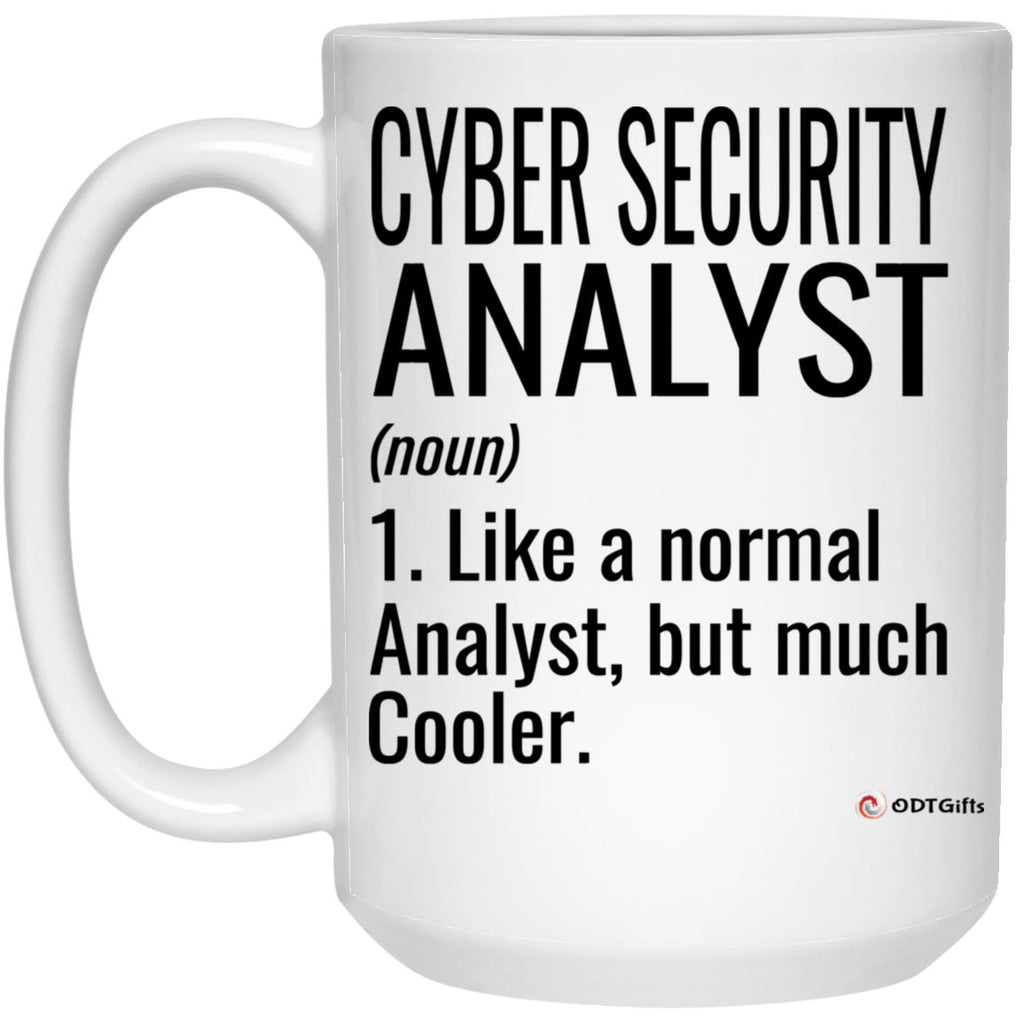 Funny Cyber Security Analyst Mug Like A Normal Analyst But Much Cooler Coffee Cup 15oz White  High quality 15oz white gloss ceramic mug Decorated with full wrap dye sublimation Microwave & Dishwasher safe AAA ORCA Coating™...
