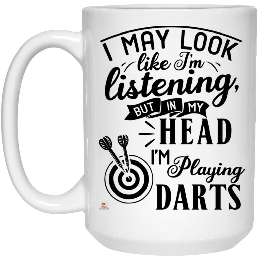 Funny Darts Mug I May Look Like I'm Listening But In My Head I'm Playing Darts Coffee Cup 15oz White 21504