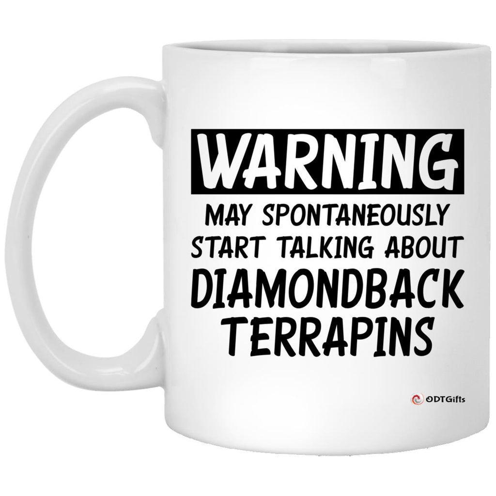 Funny Diamondback Terrapin Mug Warning May Spontaneously Start Talking About Diamondback Terrapins Coffee Cup 11oz White  High quality white gloss 11oz ceramic mug Dishwasher safe & Microwave safe Top-to-bottom full wrap dye sublimation AAA Orca Coating™...