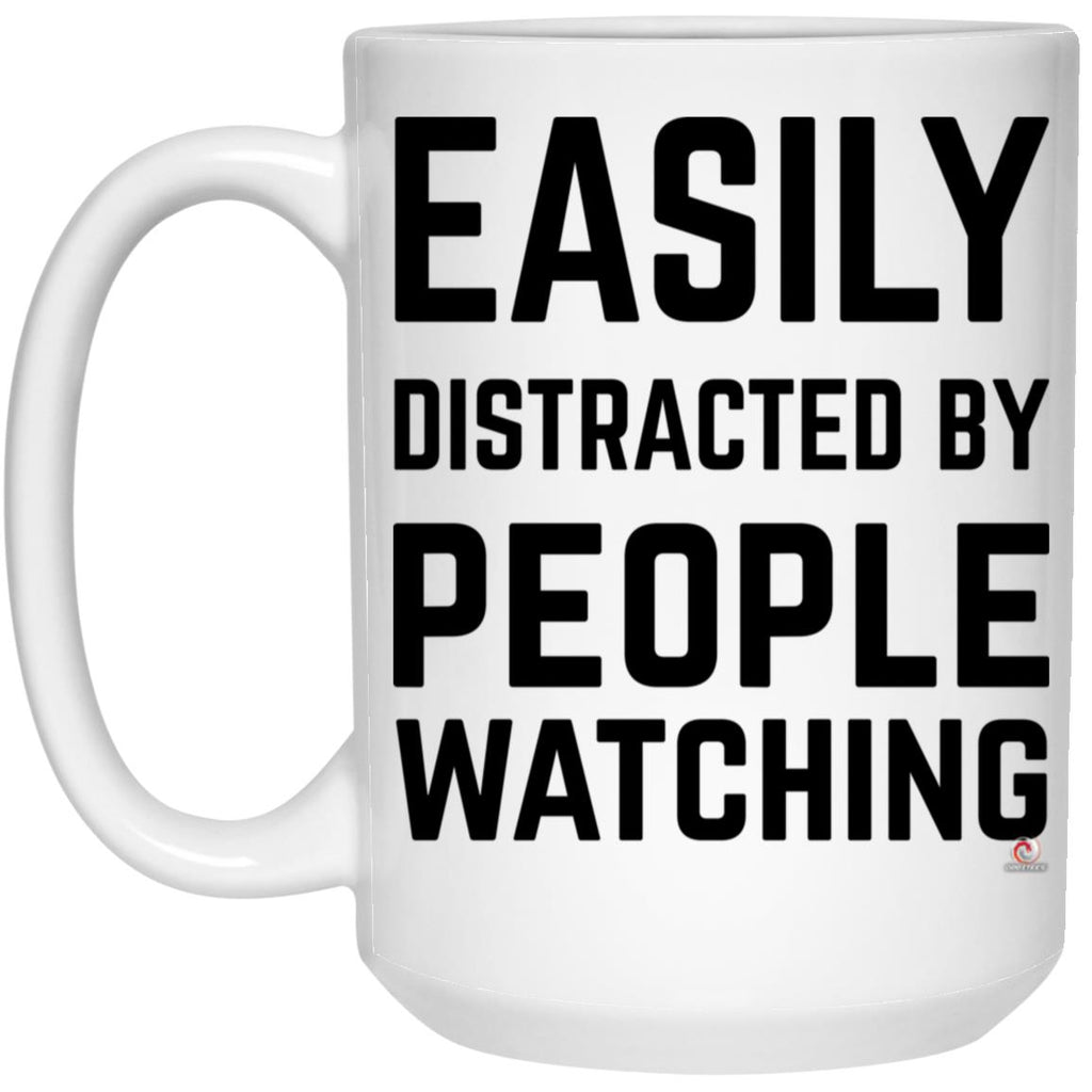 Funny Easily Distracted By People Watching Coffee Cup 15oz White High quality 15oz white gloss ceramic mug Decorated with full wrap dye sublimation Microwave & Dishwasher safe AAA ORCA Coating™ for maximum print vibrancy & longevity...