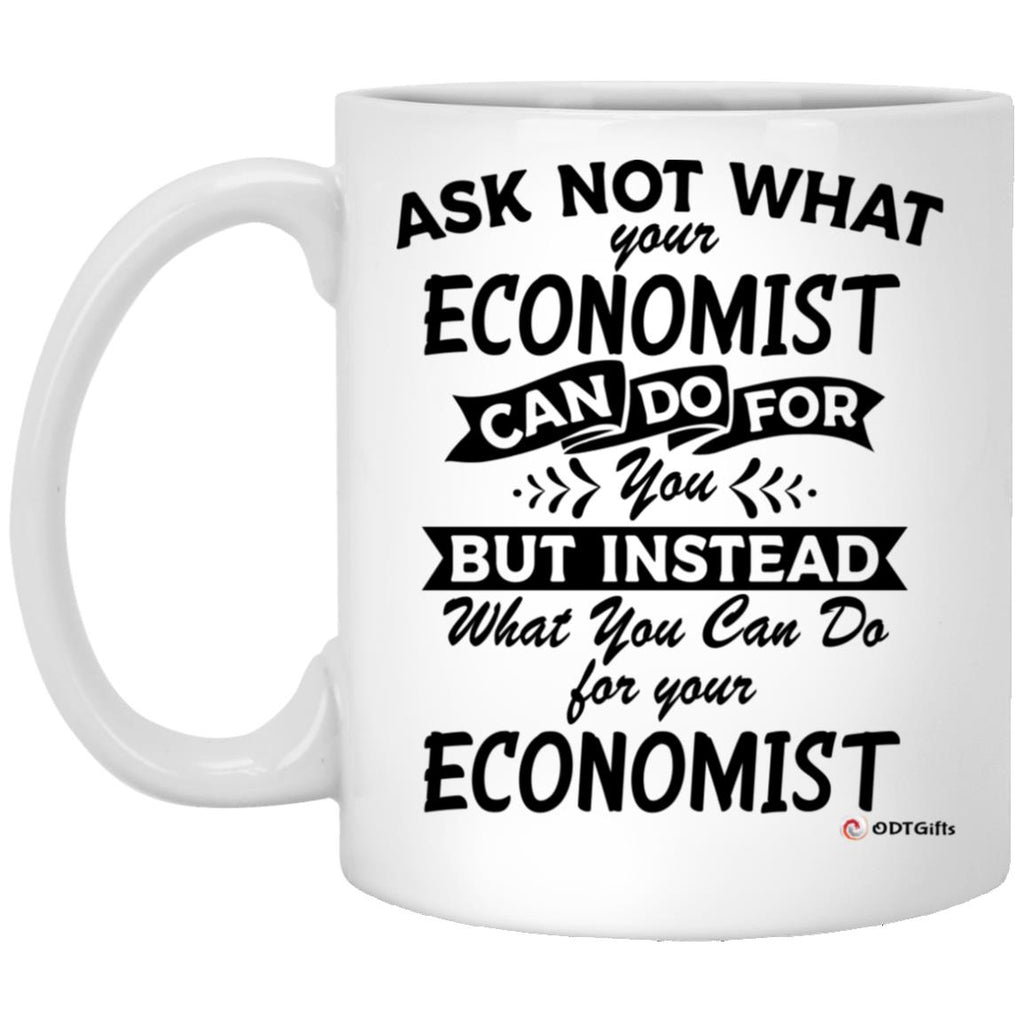 Funny Economist Mug Ask Not What Your Economist Can Do For You Coffee Cup 11oz White  High quality white gloss 11oz ceramic mug Dishwasher safe & Microwave safe Top-to-bottom full wrap dye sublimation AAA Orca Coating™...