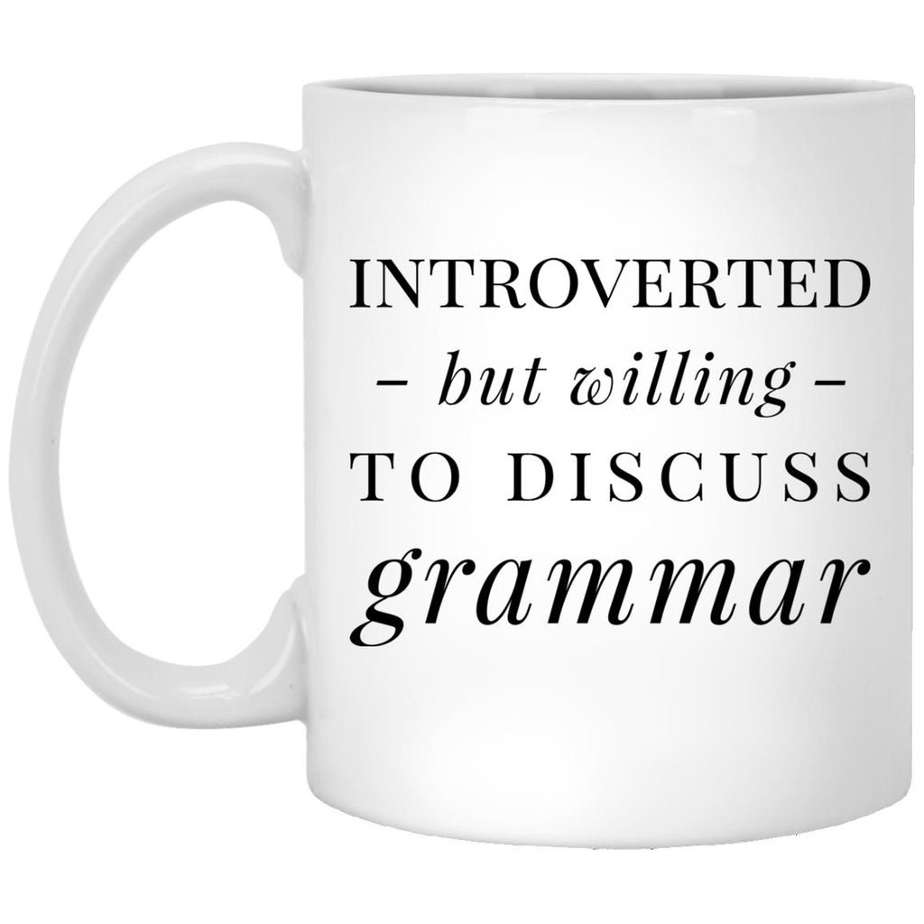 Funny Editor Teacher Mug Introverted But Willing To Discuss Grammar Coffee Cup 11oz White