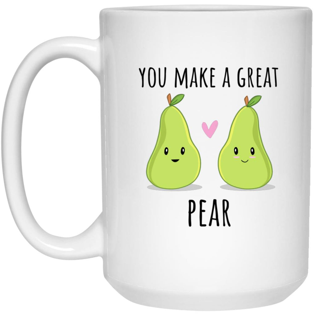 Funny Engagement Mug You Make A Great Pear Coffee Cup 15oz White High quality 15oz white gloss ceramic mug Decorated with full wrap dye sublimation Microwave & Dishwasher safe AAA ORCA Coating™ for maximum print vibrancy...