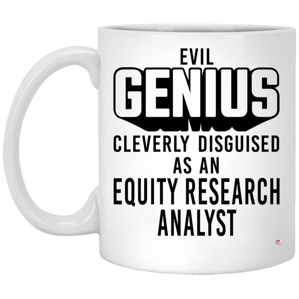 Funny Equity Research Analyst Mug Evil Genius Cleverly Disguised As An Equity Research Analyst Coffee Cup 11oz White High quality white gloss 11oz ceramic mug Dishwasher safe & Microwave safe Top-to-bottom full wrap dye sublimation AAA...