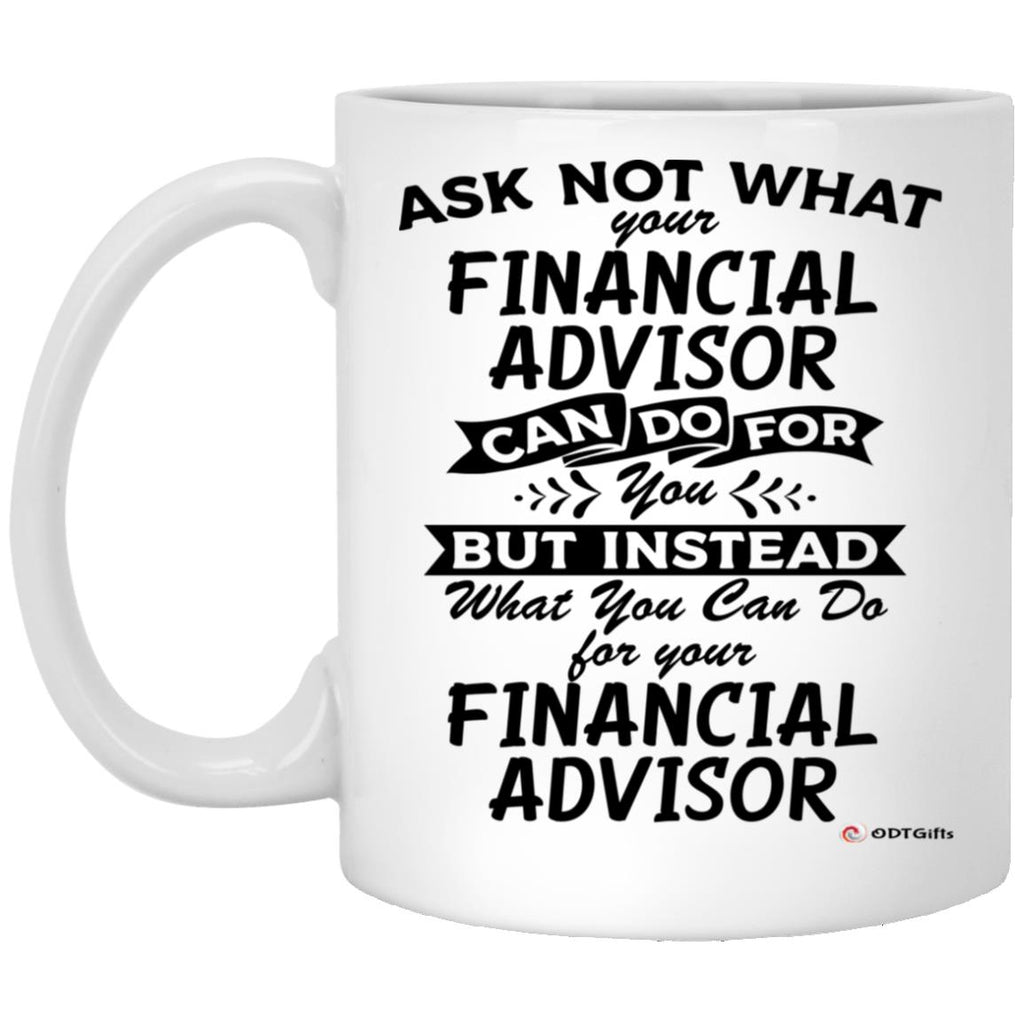 Funny Financial Advisor Mug Ask Not What Your Financial Advisor Can Do For You Coffee Cup 11oz White High quality white gloss 11oz ceramic mug Dishwasher safe & Microwave safe Top-to-bottom full wrap dye sublimation AAA...