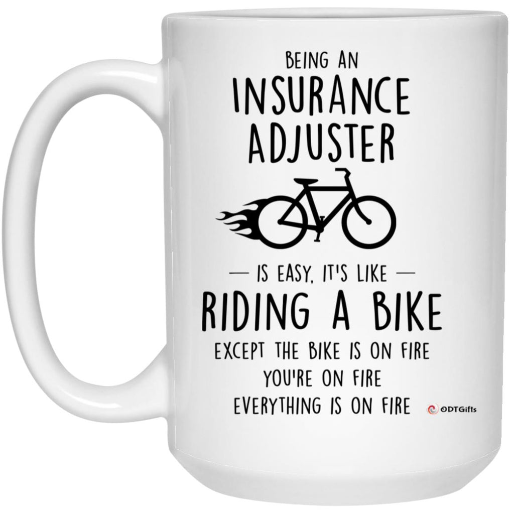 Funny Insurance Adjuster Mug Being An Insurance Adjuster Is Easy It's Like Riding A Bike Except Coffee Cup 15oz White  High quality 15oz white gloss ceramic mug Top to bottom full wrap decoration Microwave & Dishwasher...