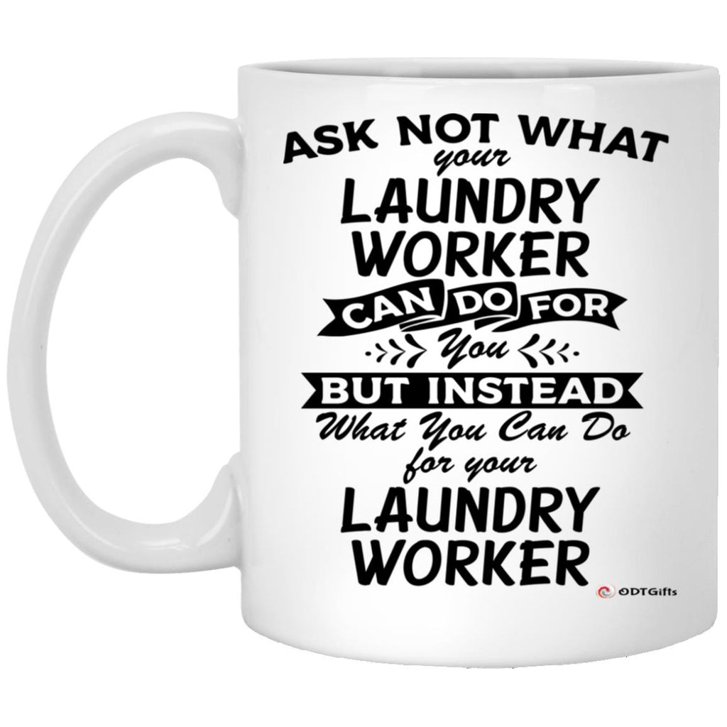 Funny Laundry Worker Mug Ask Not What Your Laundry Worker Can Do For You Coffee Cup 11oz White High quality ceramic mug Dishwasher safe Microwave safe White gloss 11 oz Decorated with full wrap dye sublimation...