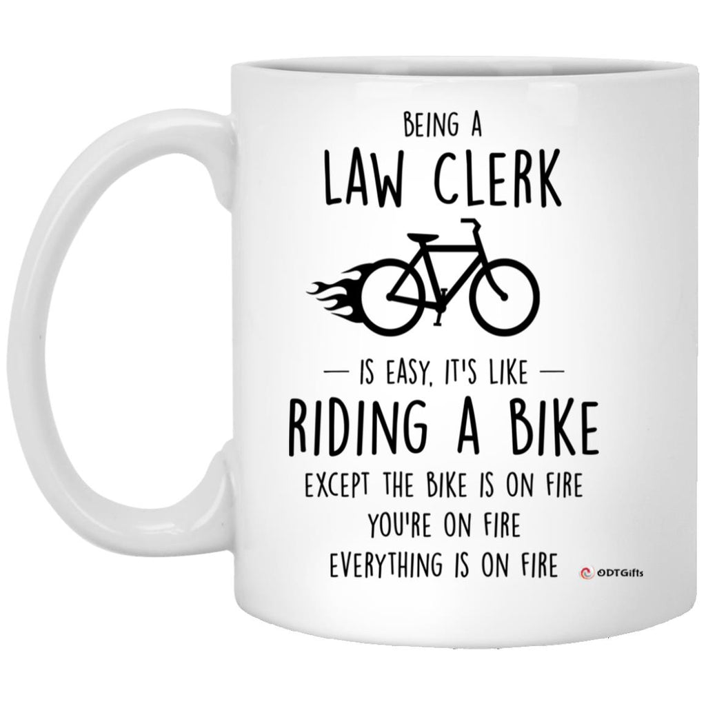 Funny Law Clerk Mug Being A Law Clerk Is Easy It's Like Riding A Bike Except Coffee Cup 11oz White High quality ceramic mug Dishwasher safe Microwave safe White gloss 11 oz Decorated with full wrap...