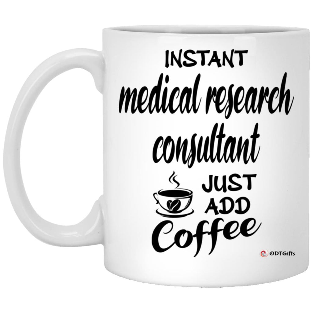 Funny Medical Research Consultant Mug Instant Medical Research Consultant Just Add Coffee Cup 11oz White High quality white gloss 11oz ceramic mug Dishwasher safe & Microwave safe Top-to-bottom full wrap dye sublimation AAA ORCA Coating™ for...