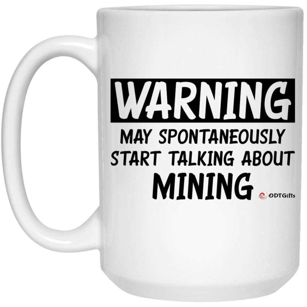 Funny Miner Mug Warning May Spontaneously Start Talking About Mining Coffee Cup 15oz White 21504
