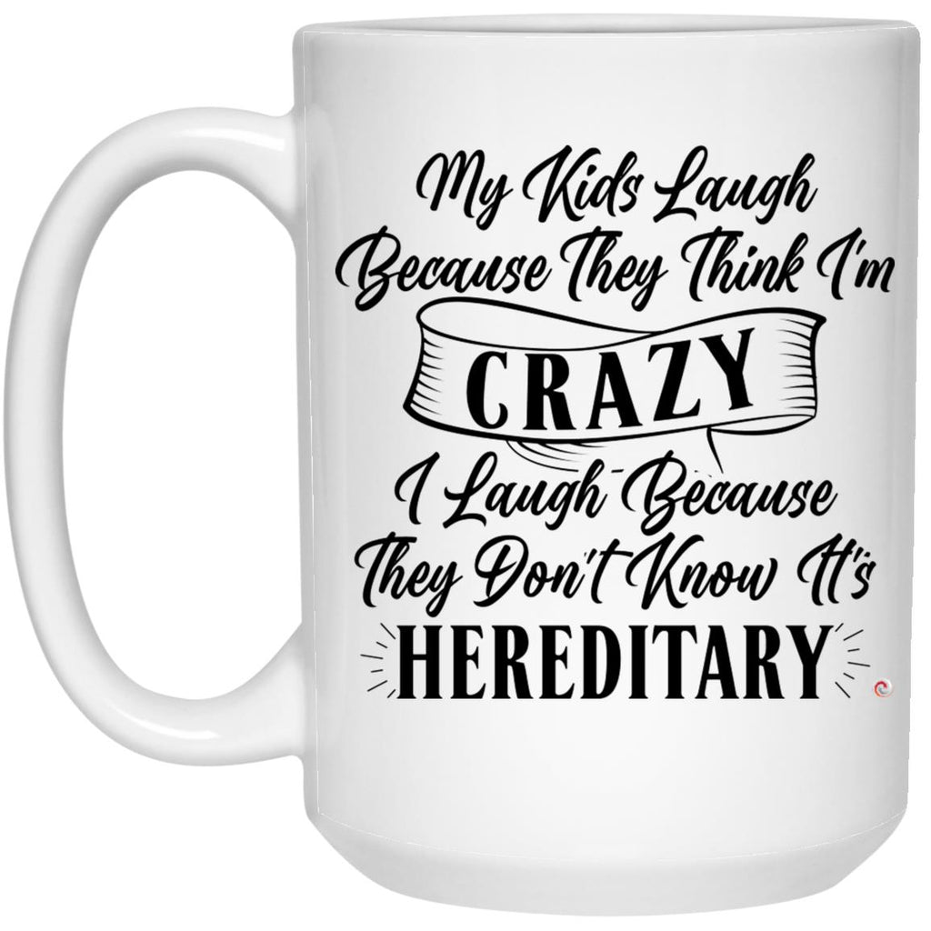 Funny Mom Dad Mug My Kids Laugh Because They Think I'm Crazy Coffee Cup 15oz White 21504