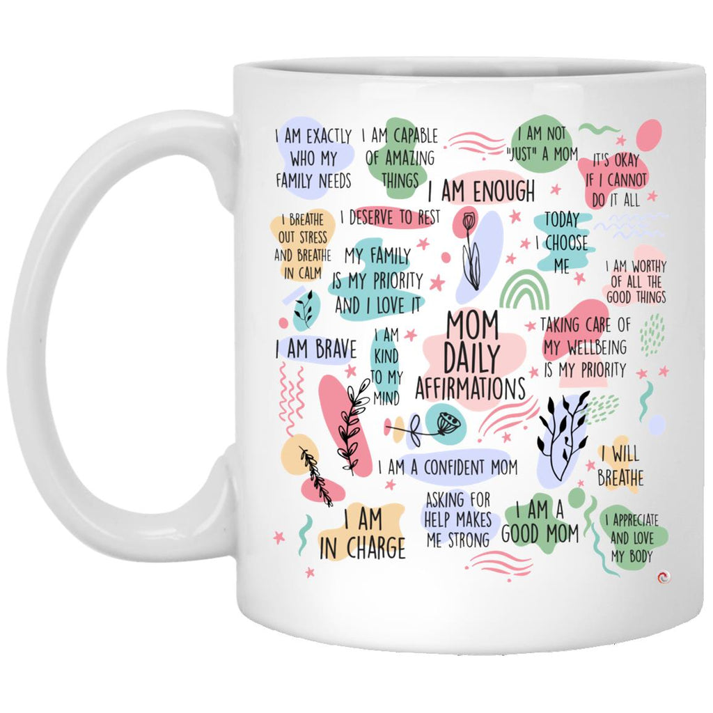 Funny Mother Mug Mom Daily Affirmation Coffee Cup 11oz White  High quality white gloss 11oz ceramic mug Dishwasher safe & Microwave safe Top-to-bottom full wrap dye sublimation AAA Orca Coating™ for maximum print vibrancy Decoration Method:...