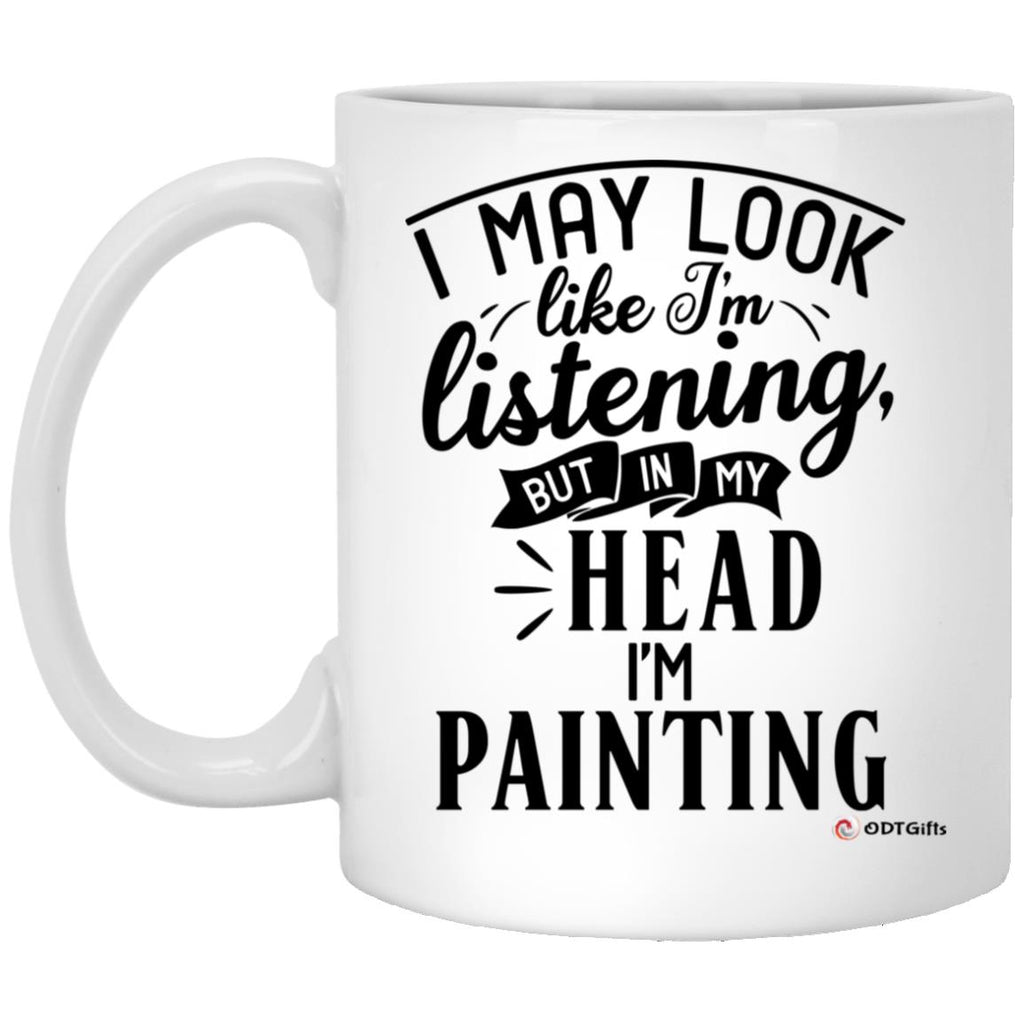 Funny Painter Mug I May Look Like I'm Listening But In My Head I'm Painting Coffee Cup 11oz White High quality white gloss 11oz ceramic mug Dishwasher safe & Microwave safe Top-to-bottom full wrap dye sublimation...