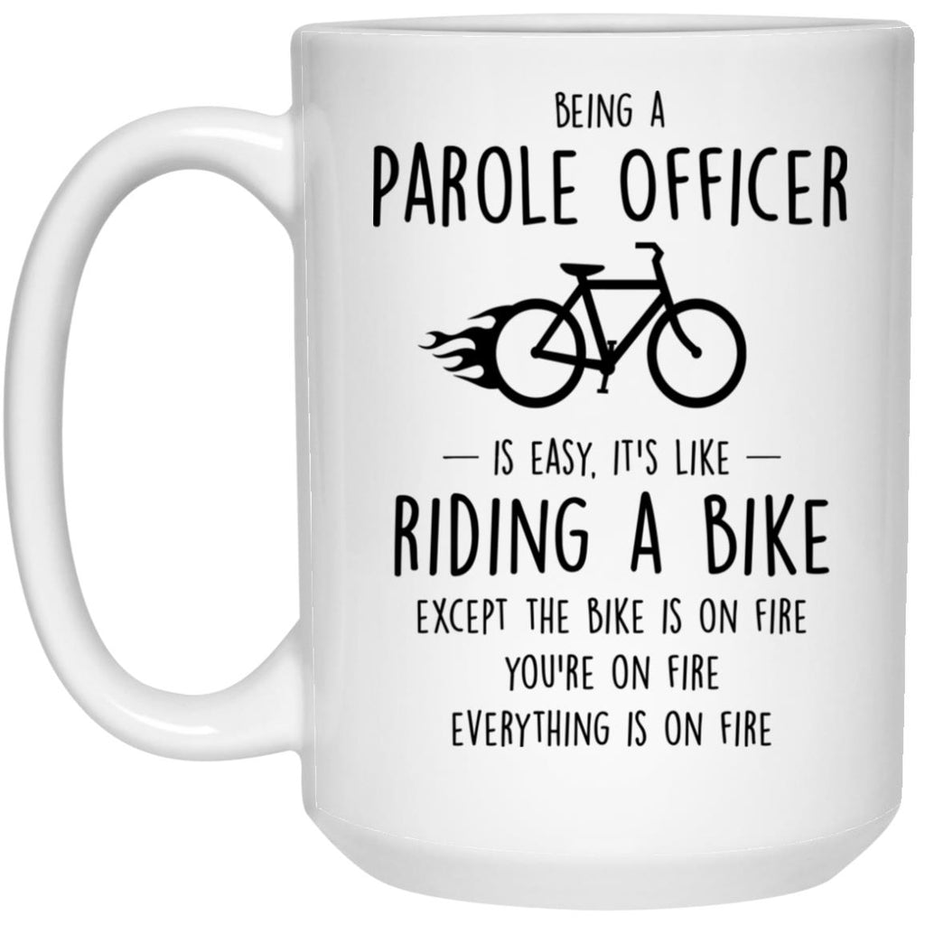 Funny Parole Officer Mug Being A Parole Officer Is Easy It's Like Riding A Bike Except Coffee Cup 15oz White 21504