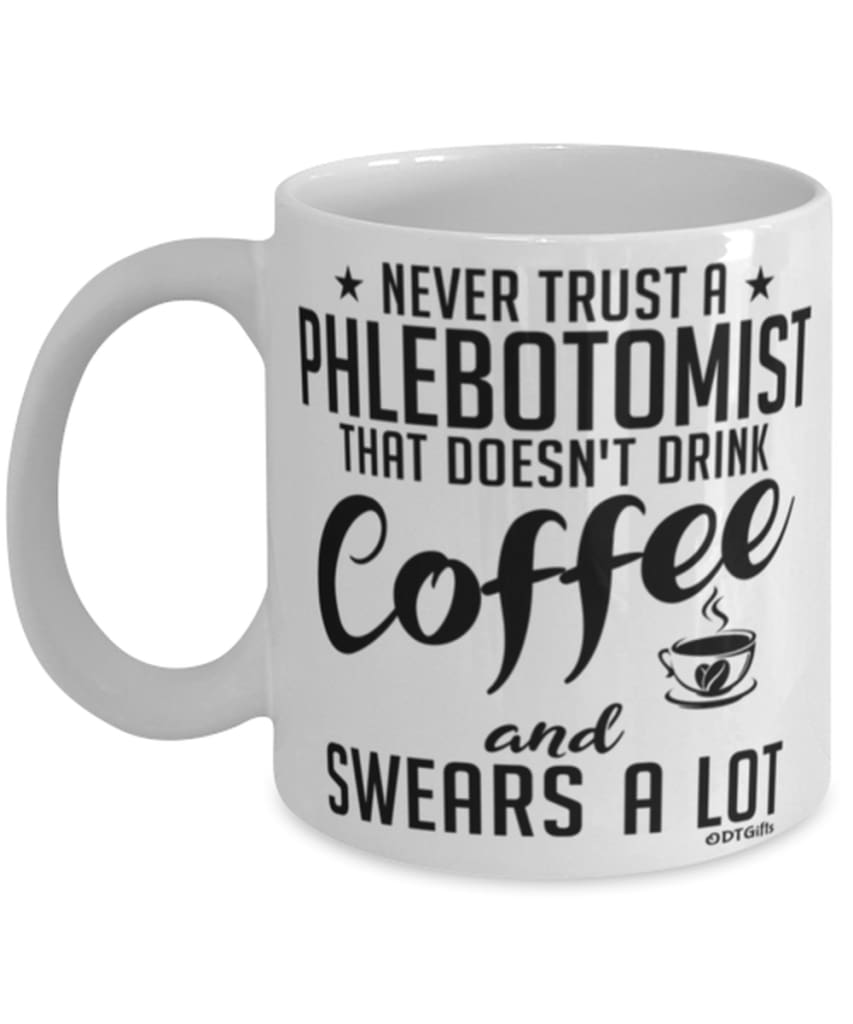 Funny Phlebotomist Mug Never Trust A Phlebotomist That Doesn't Drink Coffee and Swears A Lot Coffee Cup 11oz 15oz White