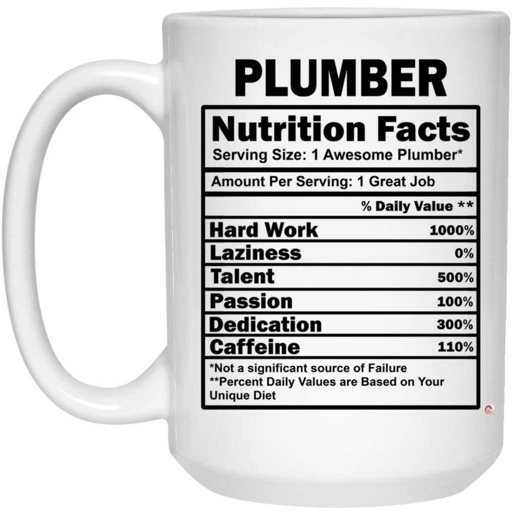 Funny Plumber Mug Plumber Nutrition Facts Coffee Cup 15oz White High quality 15oz white gloss ceramic mug Decorated with full wrap dye sublimation Microwave & Dishwasher safe AAA ORCA Coating™ for maximum print vibrancy & longevity...