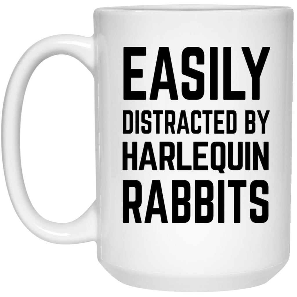 Funny Rabbit Mug Easily Distracted By Harlequin Rabbits Coffee Cup 15oz White High quality 15oz white gloss ceramic mug Decorated with full wrap dye sublimation Microwave & Dishwasher safe AAA ORCA Coating™ for maximum print vibrancy...