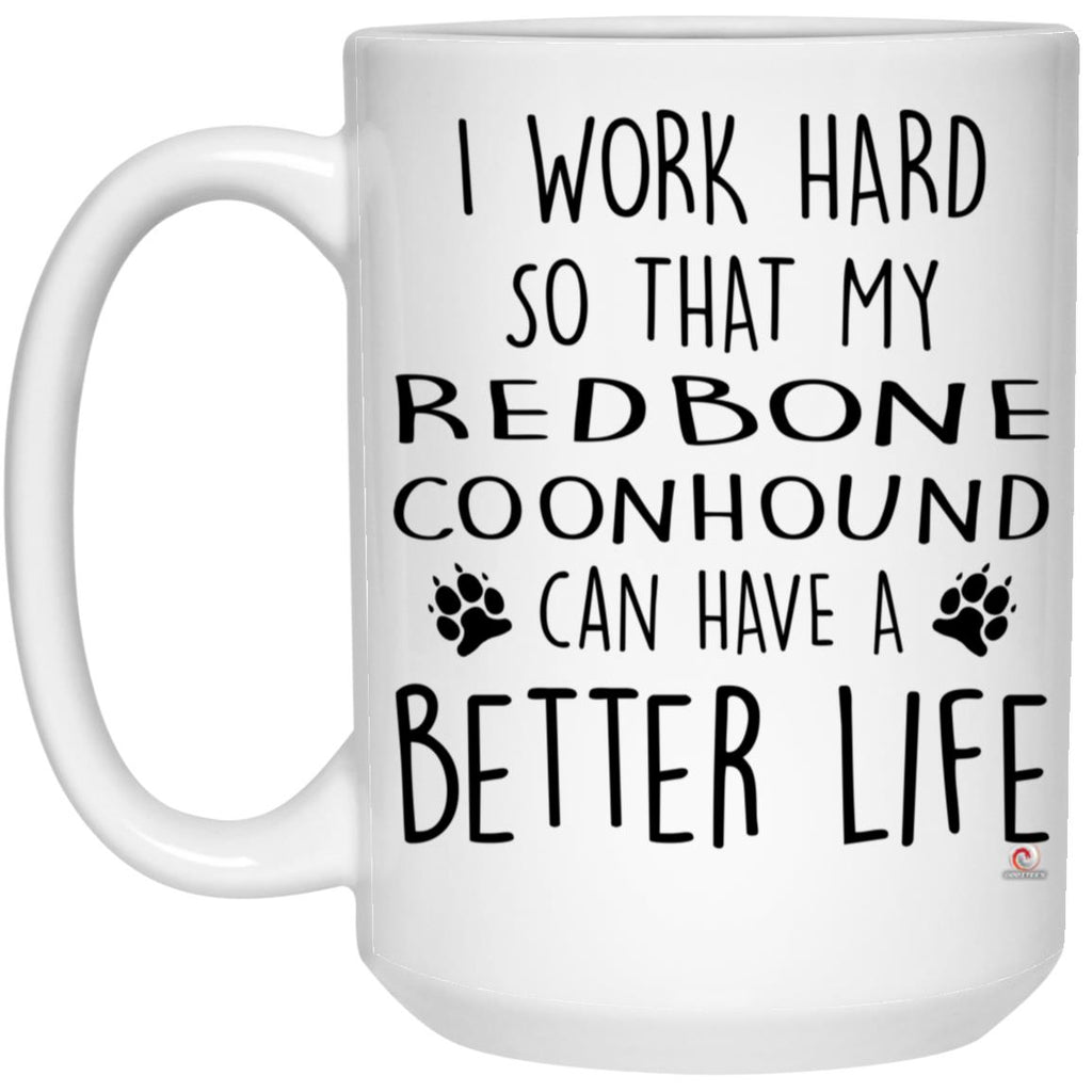 Funny Redbone Coonhound Mug I Work Hard So That My Redbone Coonhound Can Have A Better Life Coffee Cup 15oz White 21504