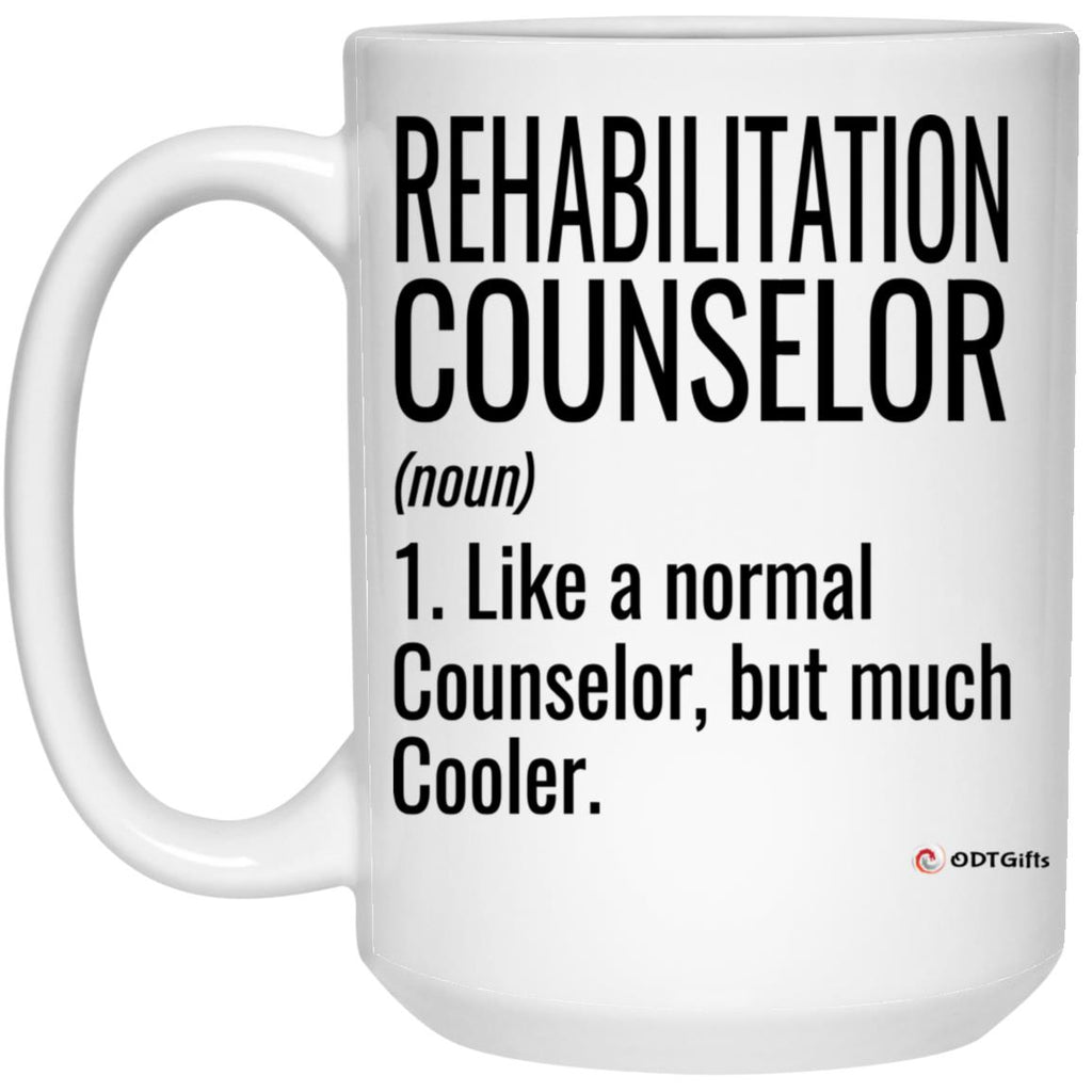 Funny Rehabilitation Counselor Mug Like A Normal Counselor But Much Cooler Coffee Cup 15oz White High quality 15oz white gloss ceramic mug Decorated with full wrap dye sublimation Microwave & Dishwasher safe AAA ORCA Coating™ for...