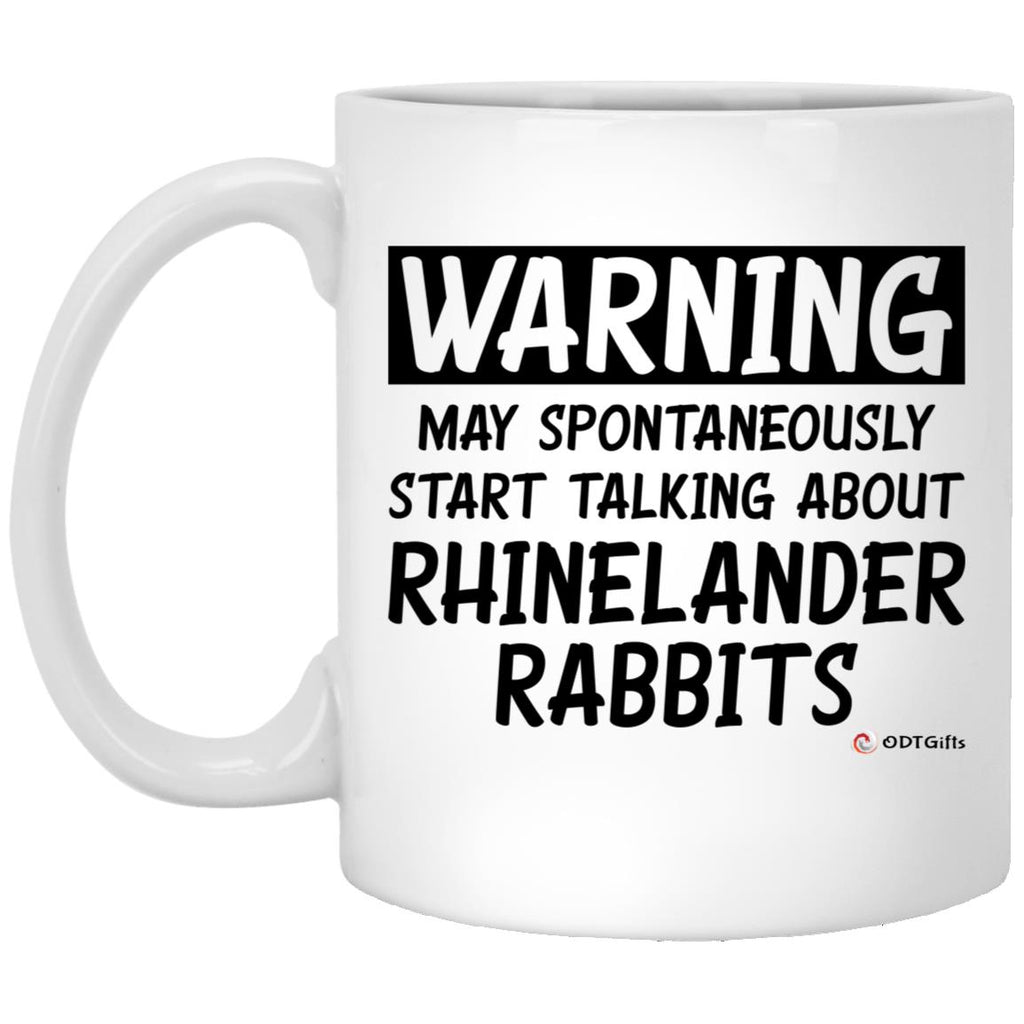 Funny Rhinelander Rabbit Mug Warning May Spontaneously Start Talking About Rhinelander Rabbits Coffee Cup 11oz White High quality white gloss 11oz ceramic mug Dishwasher safe & Microwave safe Top-to-bottom full wrap dye sublimation AAA ORCA Coating™...