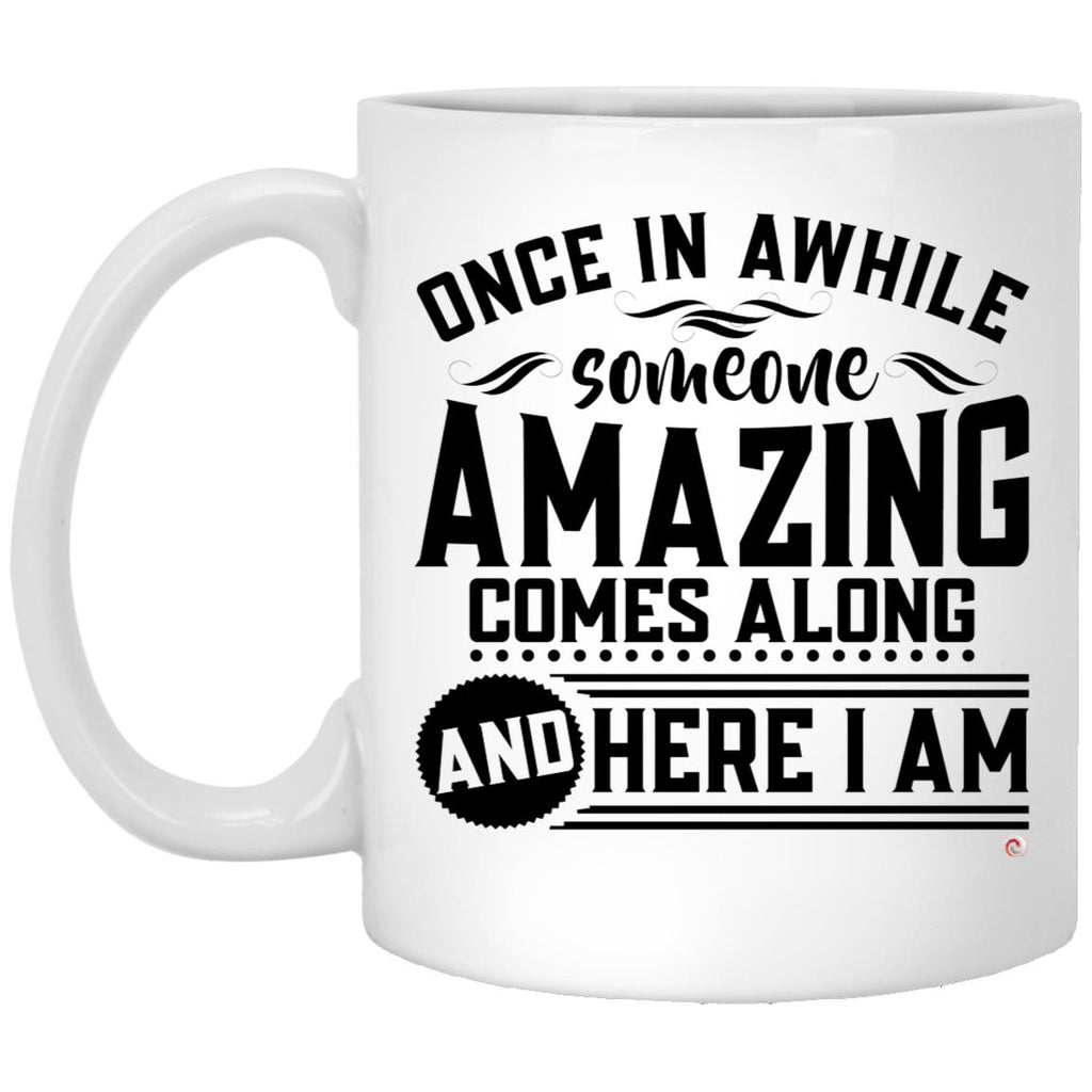 Funny Sarcastic Mug Once in a While Someone Amazing Comes Along and Here I Am Coffee Cup 11oz White High quality white gloss 11oz ceramic mug Dishwasher safe & Microwave safe Top-to-bottom full wrap dye sublimation...