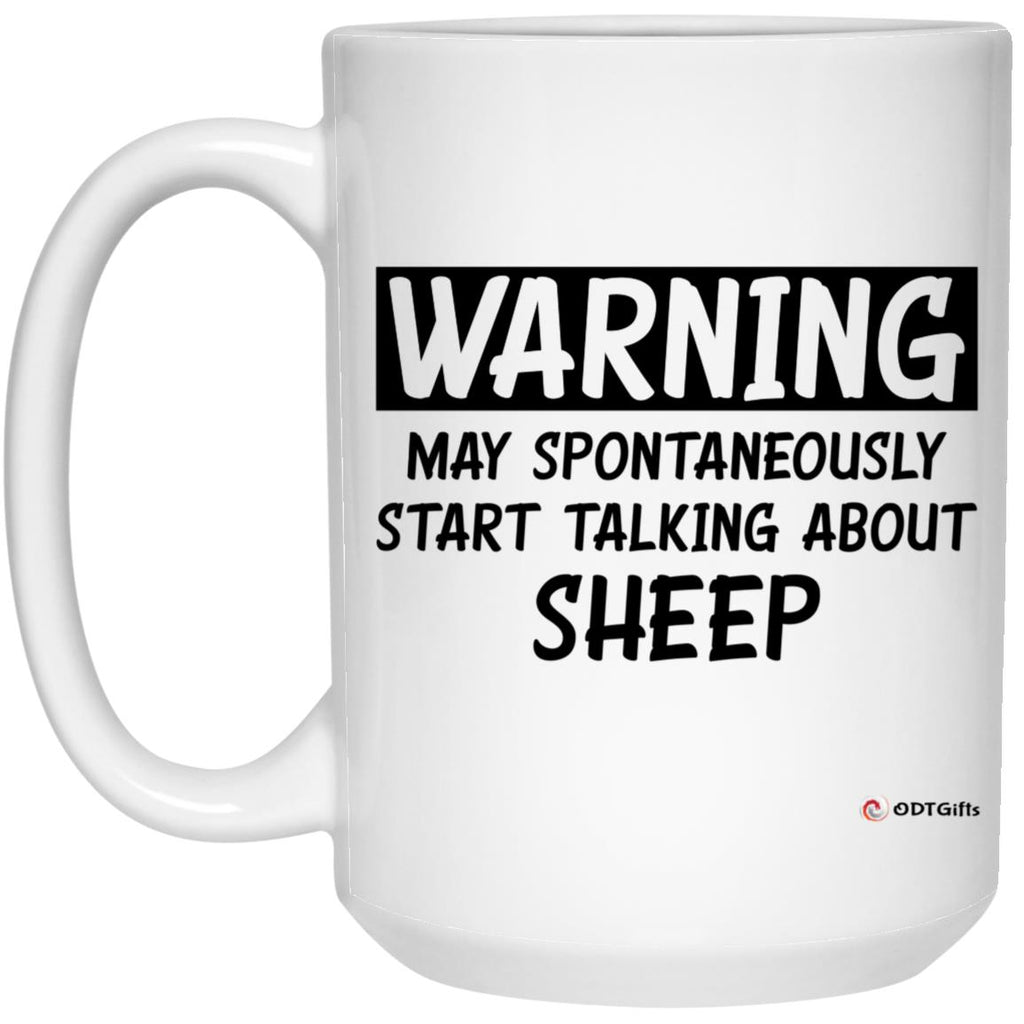 Funny Sheep Mug Warning May Spontaneously Start Talking About Sheep Coffee Cup 15oz White  High quality 15oz white gloss ceramic mug Decorated with full wrap dye sublimation Microwave & Dishwasher safe AAA ORCA Coating™ for maximum...