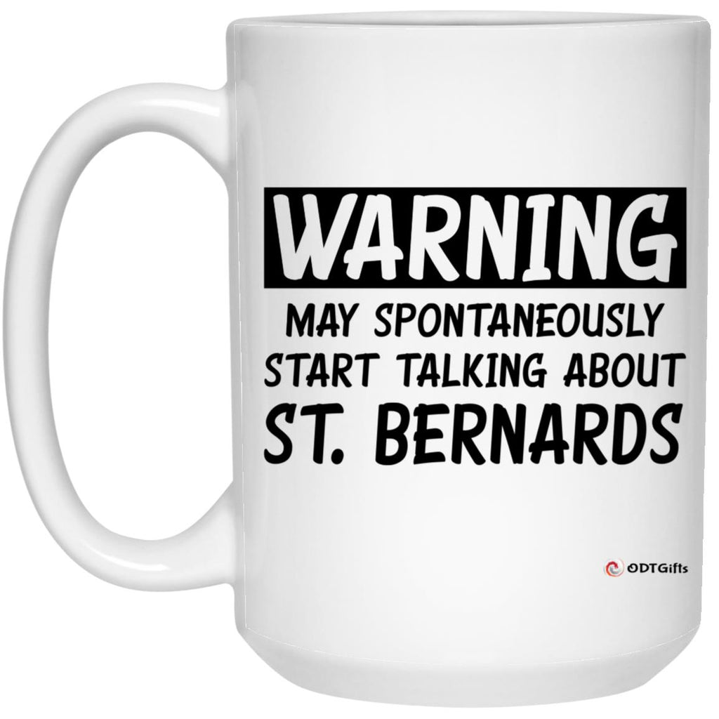 Funny St. Bernard Mug Warning May Spontaneously Start Talking About St. Bernards Coffee Cup 15oz White 21504