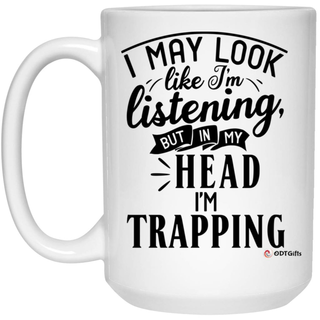 Funny Trapper Mug I May Look Like I'm Listening But In My Head I'm Trapping Coffee Cup 15oz White 21504